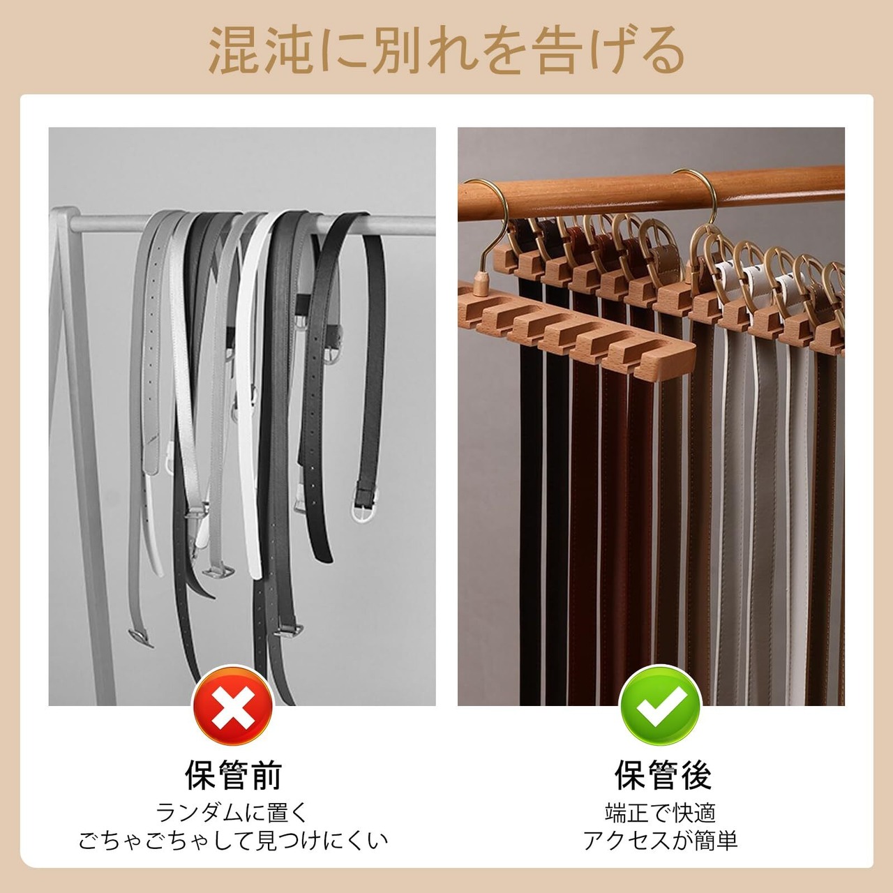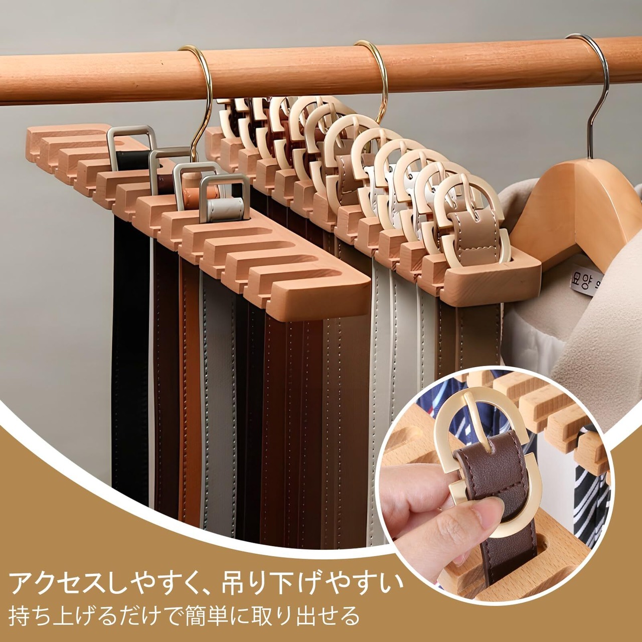 【在庫限り】ブナ材で作られたベルトハンガー、ハンガー 収納 ネクタイハンガーすべり落ちないネクタイラック たっぷりネクタイ 収納 回転 下着収納 ベルト整理、コンパートメントを備えた省スペースの木製ベルトフック、ベルト/スカーフ/ネクタイ用のワードローブ収納