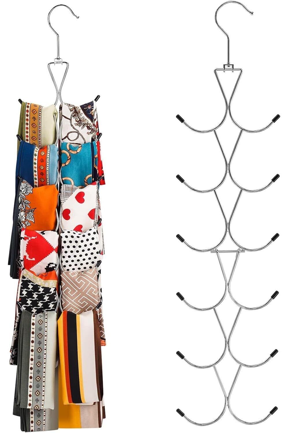 【特価セール】Lakymisy 12本掛け スカーフハンガー マルチハンガー 360度回転 マフラー ネクタイハンガー 折りたたみ式 吊り下げハンガー ベルト 帽子 バッグ 小物収納 スペース活用 多機能ハンガー