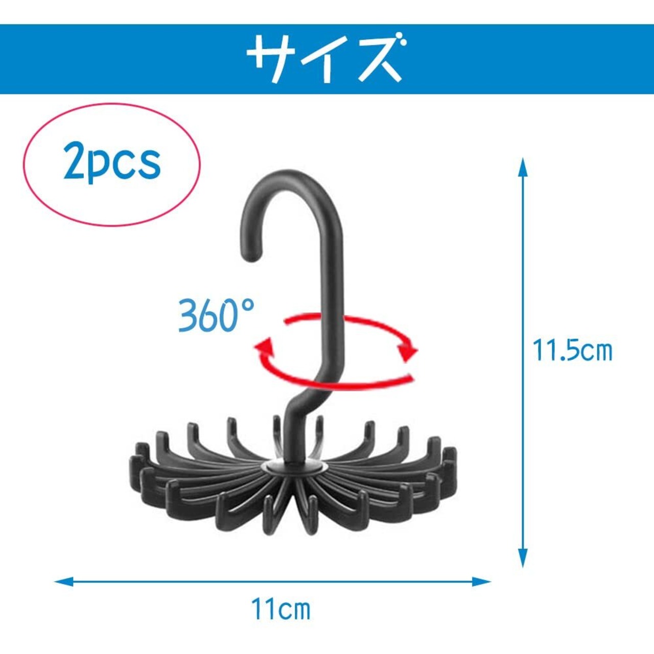 ネクタイ収納ハンガー 円形 360度回転 省スペース収納アイテム 20本のネクタイを収納可能 回転式ネクタイラック 収納フック ワードローブオーガナイザー収納用ハンガーホルダーフック (1白+1ブラック)