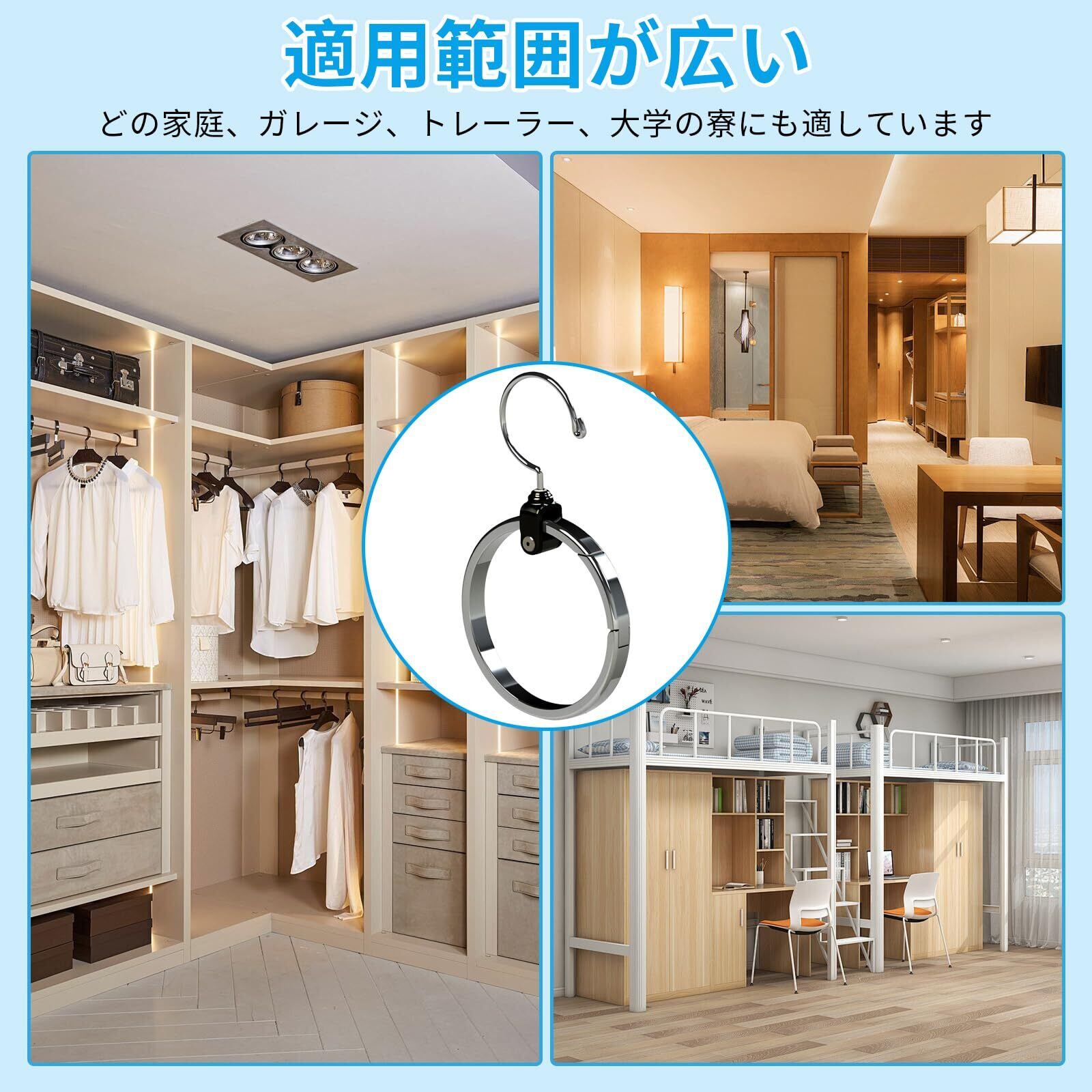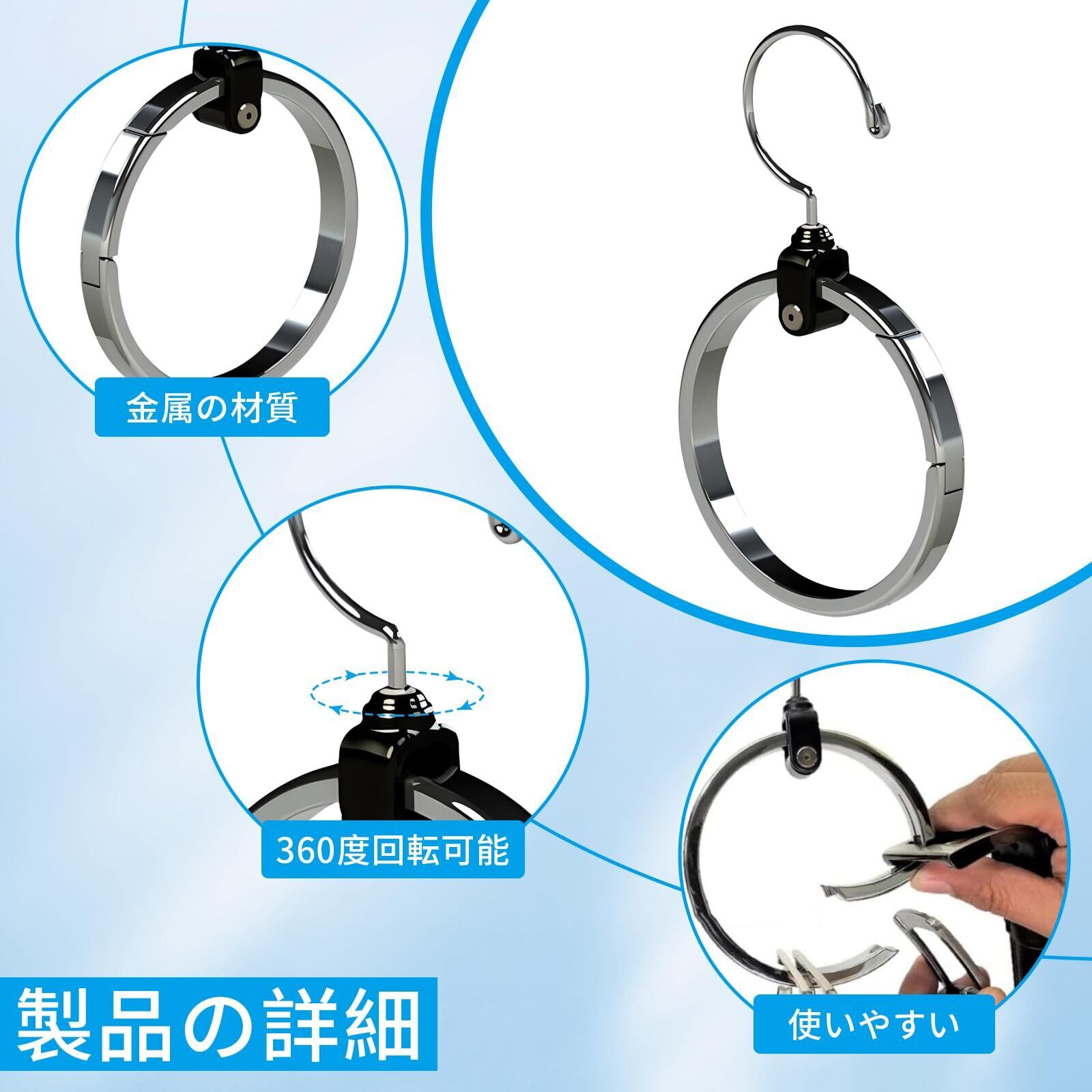【スカーフハンガー】360度回転することができる高級回転スカーフハンガーは、大きいものから小さいものまでさまざまなものを見せることができます。私たちのスカーフハンガーにはペンキ、接着剤、マジックテープ、金具の取り付けは必要ありません。私たちのスカーフハンガーをフックにかけるだけです。