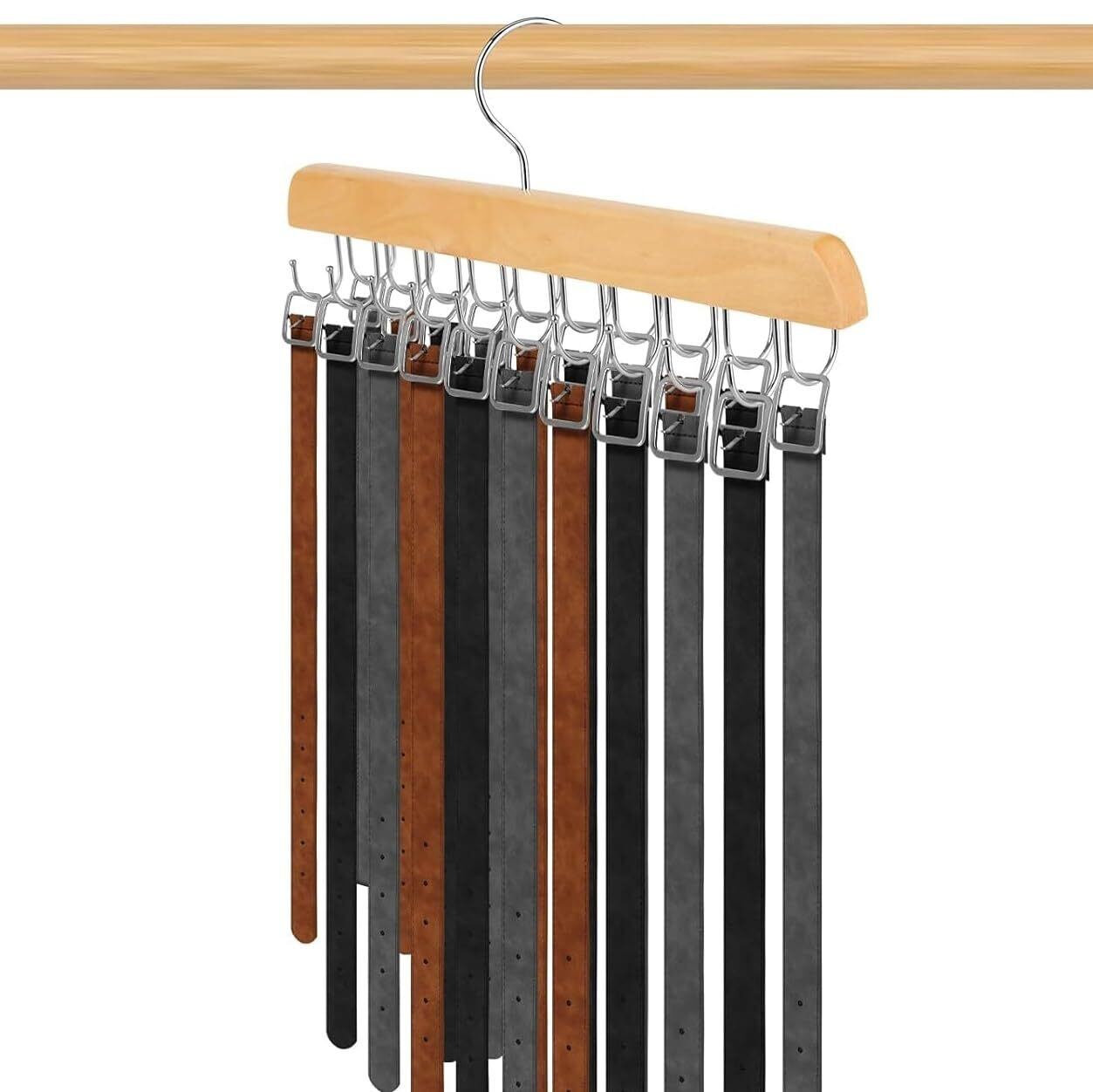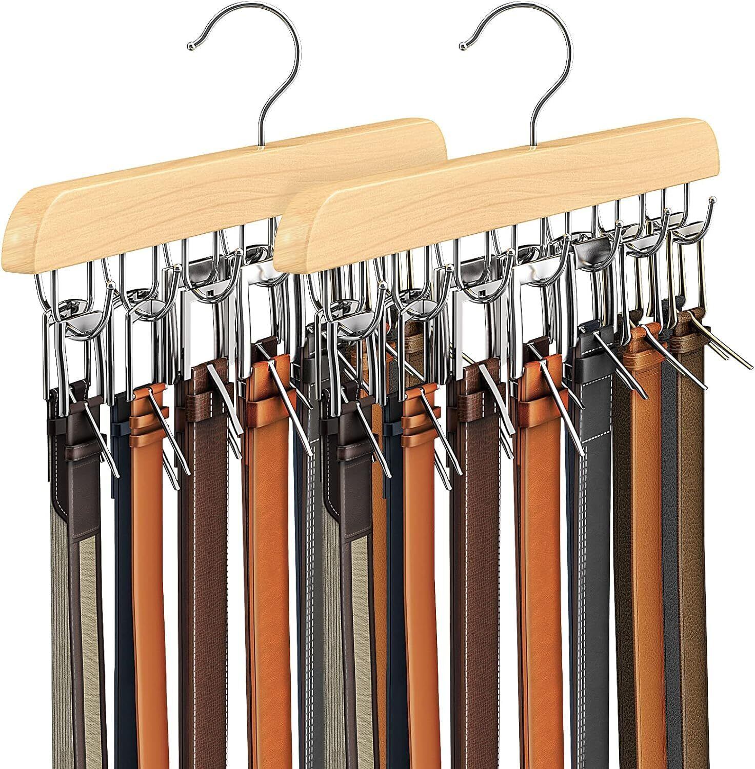 siawadeky ベルトハンガー 14本収納 2本セット 多機能 ネクタイハンガー 360度回転可能 ネクタイホルダー 滑り止め ベルトラック 省スペース 帽子 スカーフ 小物掛け 型崩れ防止 たっぷり収納 整理 クローゼット用