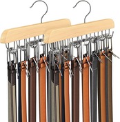 【商品仕様】:セット内容:ベルトハンガー2本、サイズ:幅37cm*高さ13cm*厚さ1.6cm、素材:木+ステンレス、色:木目色