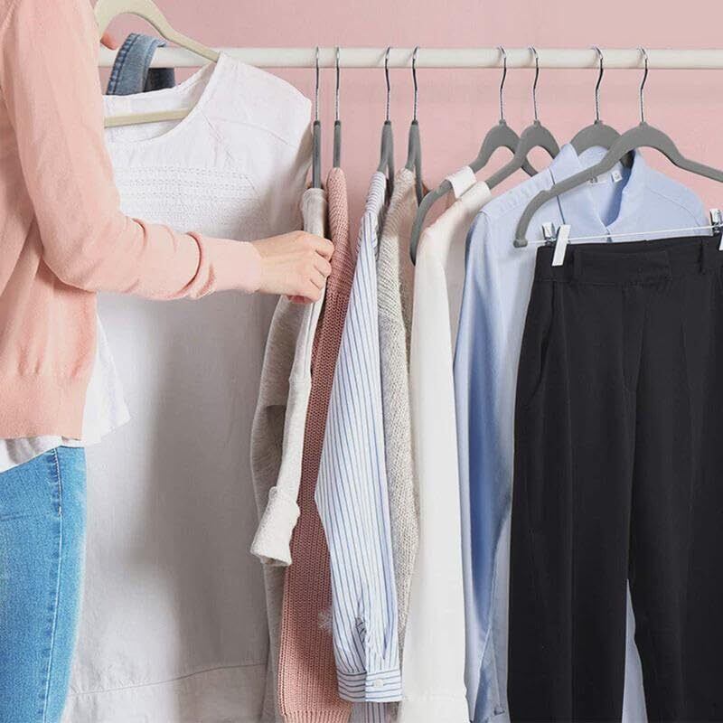 Hangerman ベーシックハンガー スエードハンガー ボトムハンガー 滑らないハンガー クリップハンガー 多機能ハンガー 強力クリップ付きグレー