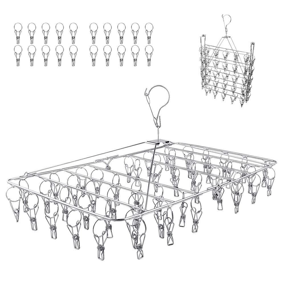 ピンチハンガー52 ピンチハンガー 洗濯物干し ハンガー ステンレス 20個予備 ピンチ 折りたたみ式 収納便利 錆に強い 頑丈 多機能 衣類ハンガー (ステンレス)