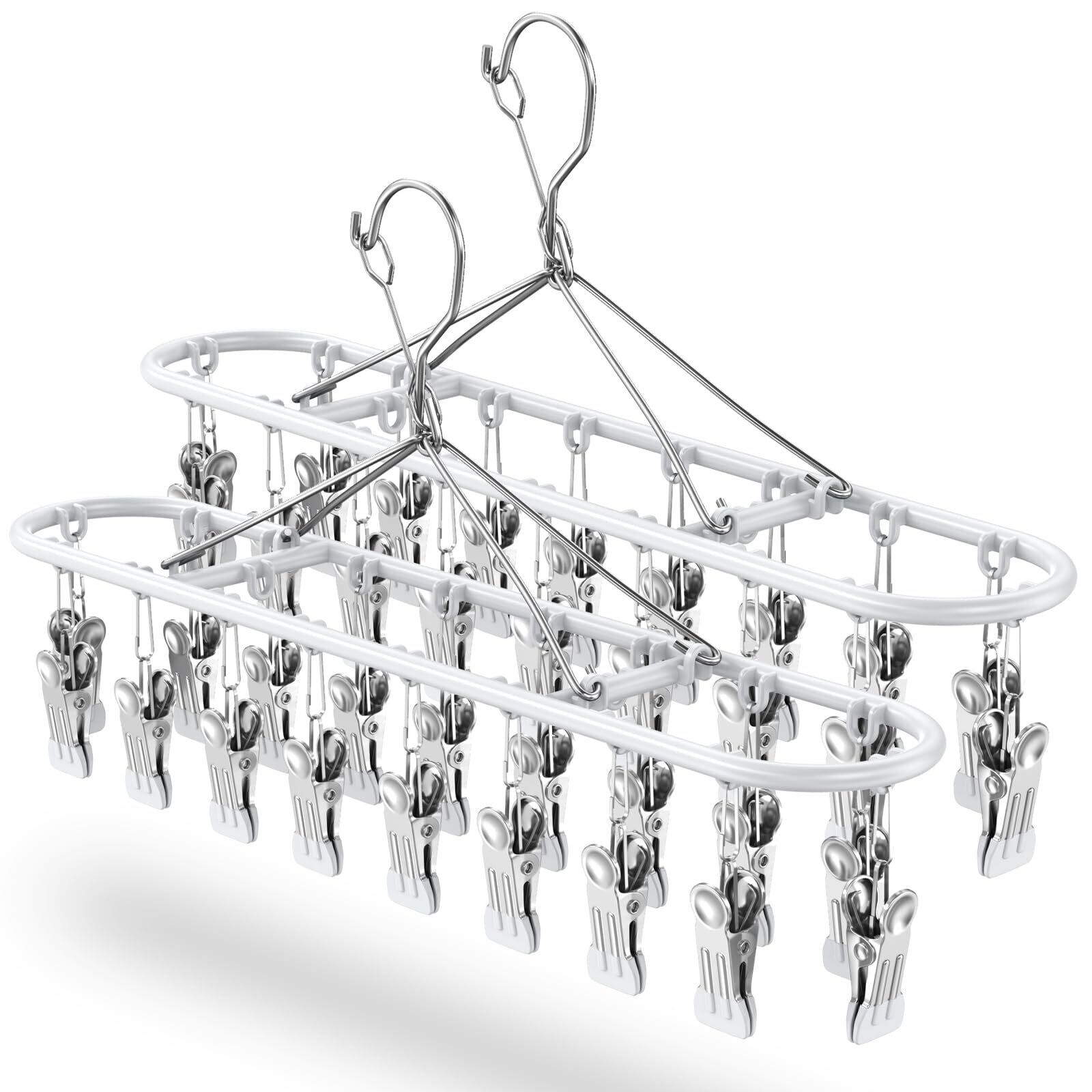 CLEKOD 2本 ズボンハンガー 超強力な挟み力 クリップハンガー,スラックスハンガー パンツハンガー,洗濯物干し 洗濯ハンガー ピンチハンガー 36 ピンチ ホワイト