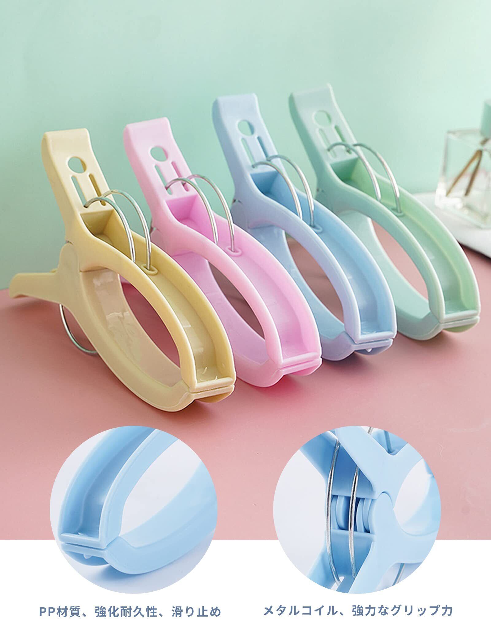 【製品が含まれます】パッケージには大きなクリップが4つ含まれており、それぞれ鮮やかな4色。 明るいカラータオルのクリップは、紛失していないかどうかを簡単に見つけることができます。