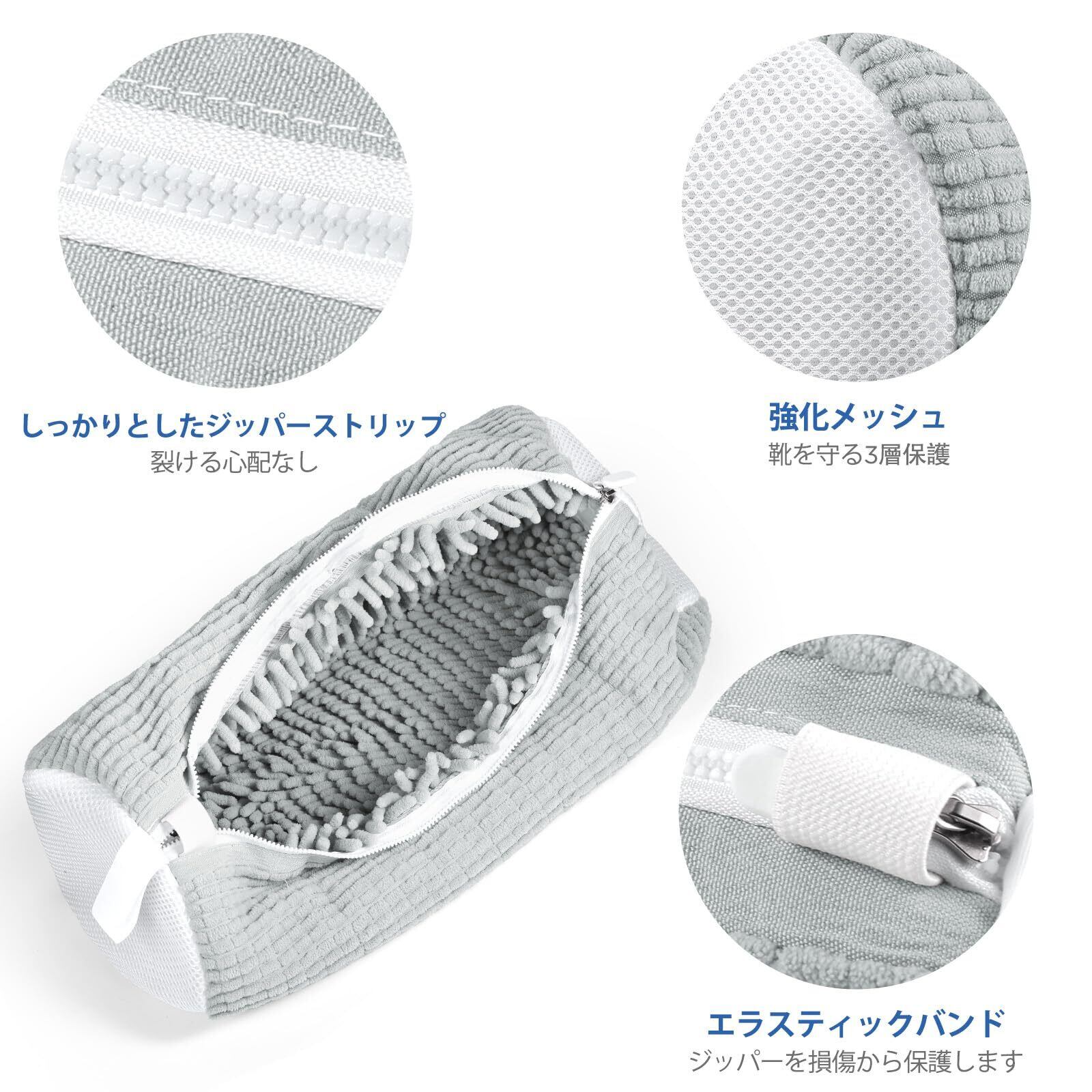 【オールラウンドで効率的な洗浄】靴ランドリーバッグには10,000本以上のシェニールマイクロファイバーの毛が使用されており、靴を360°オールラウンドに徹底的に洗浄できます。また、マイクロファイバーの毛は柔らかく繊細で、洗濯中に靴を傷つけません。