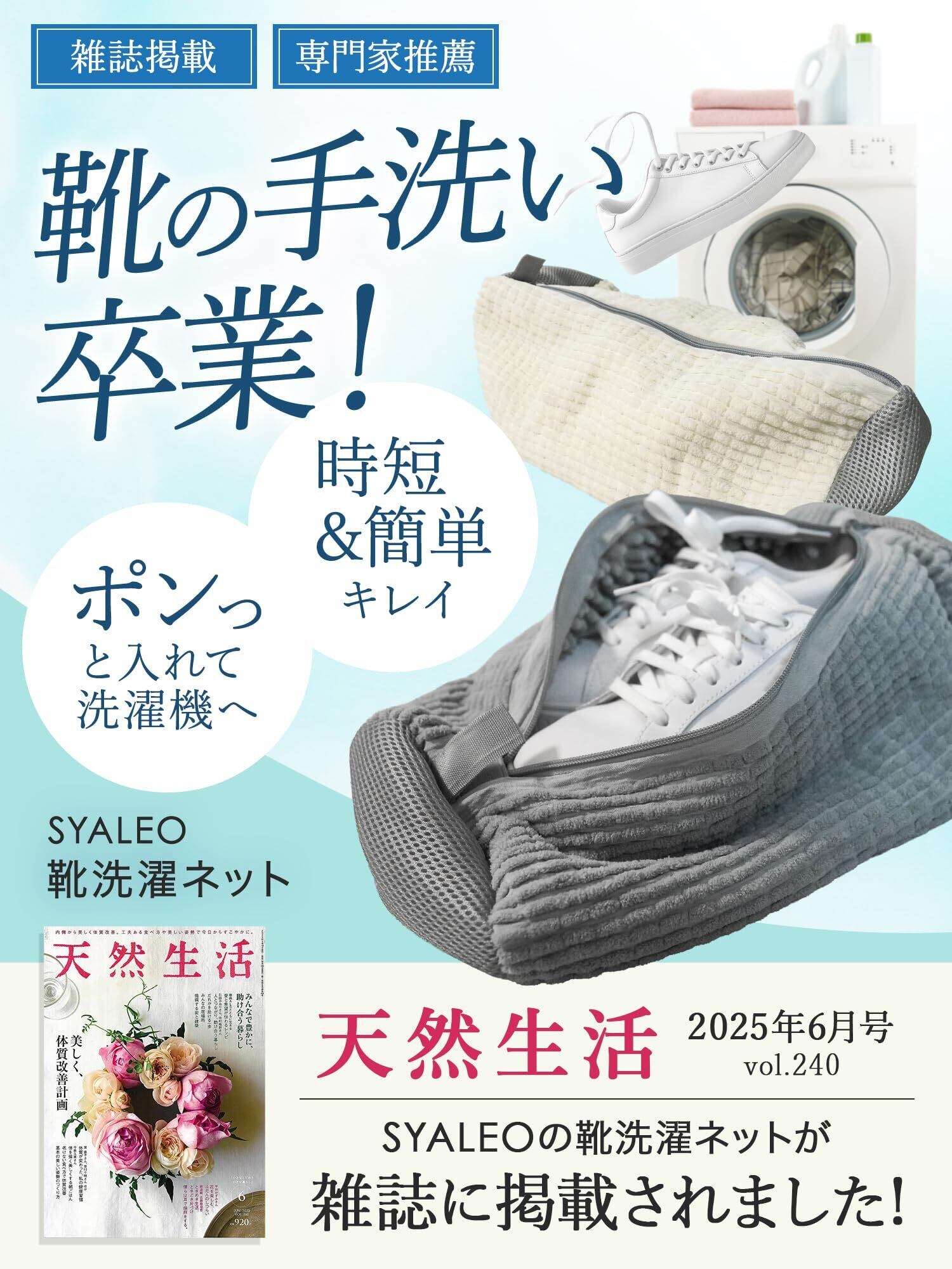 ️【クリンネスト1級が推薦】インスタフォロワー2万人、テレビなどでも活躍されている鈴木久美子先生が推薦!面倒な靴の洗濯もらくらく快適に◎「洗うのが面倒なスニーカーや上履きが洗濯機で気軽に洗える商品です!脱水中もガタガタ鳴らずにスムーズに洗う事ができました。使い終わった後はループに掛けて干すことができます。さわやかな白とグレーのカラーも素敵です。特に子育てや家事で忙しいお母さんにはおすすめです!」(鈴木先生からのコメント)