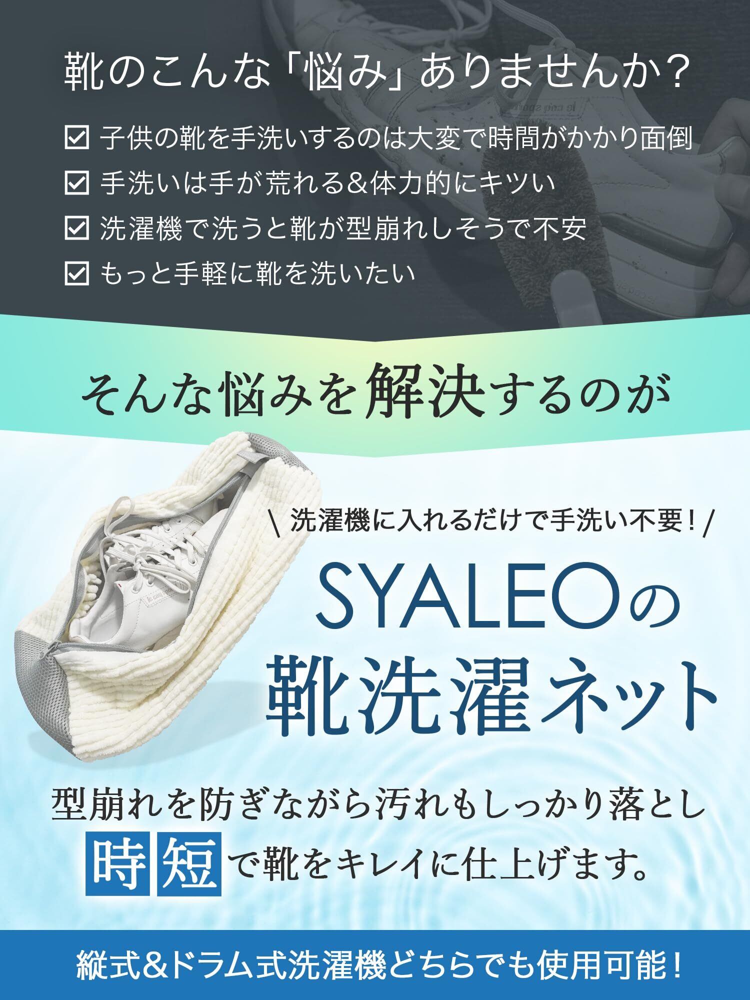 ️【商品詳細】〇サイズ:横/約39cm、縦/約35.5cm、高さ/約19cm(※大人から子供サイズまで対応可能 ※靴のサイズ、最大30cmまで使用可能 ※縦式・ドラム式どちらの洗濯機も使用可能)〇カラー:ホワイト、ブルー 〇セット内容:靴洗濯ネット、説明書、解説動画 〇ブランド:SYALEO ※大人サイズ(24cm以上)は、靴洗濯ネット1枚に片足ずつの洗濯を推奨 サイズ 横/約39cm、縦/約35.5cm、高さ/約19cm
