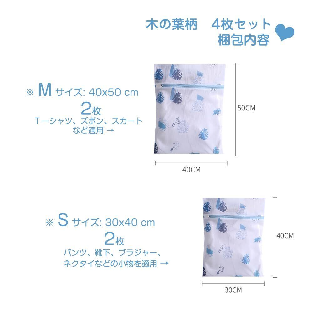 TAMA KOUGEI 洗濯ネット セット 角型 4枚 M:50*40cm*2 S:40*30cm*2 洗濯袋 無蛍光剤 抗菌 ランドリーネット 細かい綱目 丈夫 耐久性 コート セーター T-シャツ ブラジャーなど適用 型崩れ 絡み防止 旅行収納 家庭用(4枚セット オシャレ木の葉)