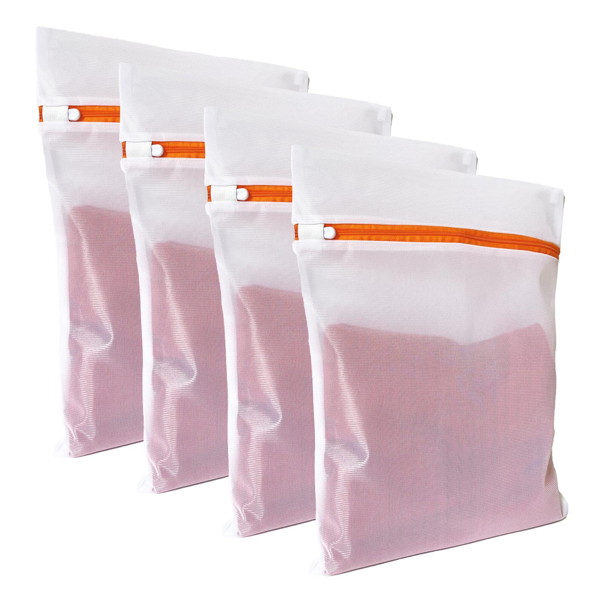 洗濯ネット(40㎝×30㎝) 4枚セット きめ細かい編み目構造 防さびファスナー 丈夫なポリエステル素材 おしゃれ着 下着 型崩れ防止[LAUNDRY CLUB]