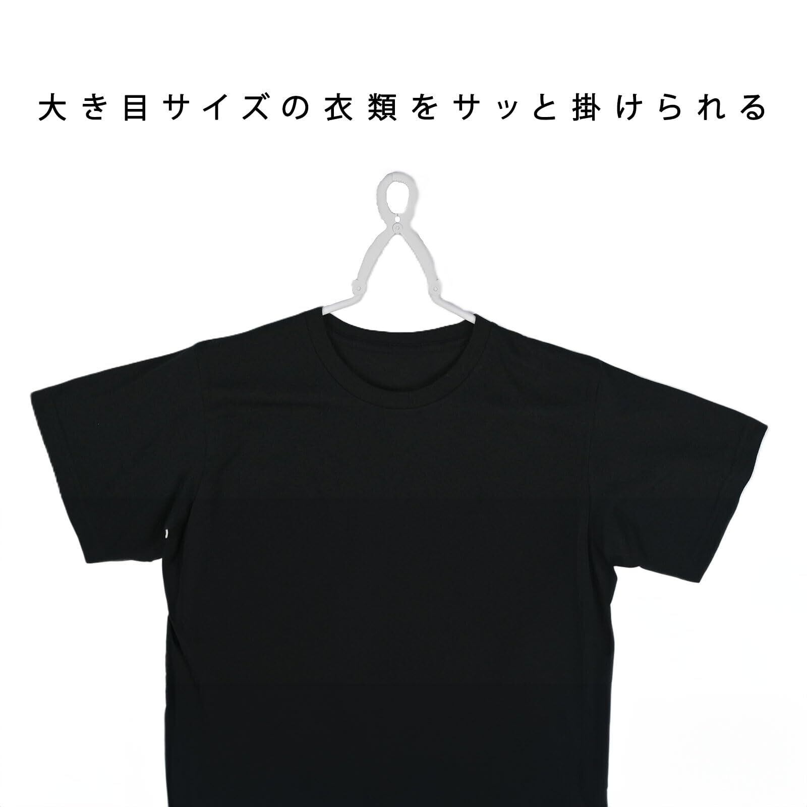 肩部を握って変形させることで、Tシャツなどの襟を伸ばさず服に差しこめます。