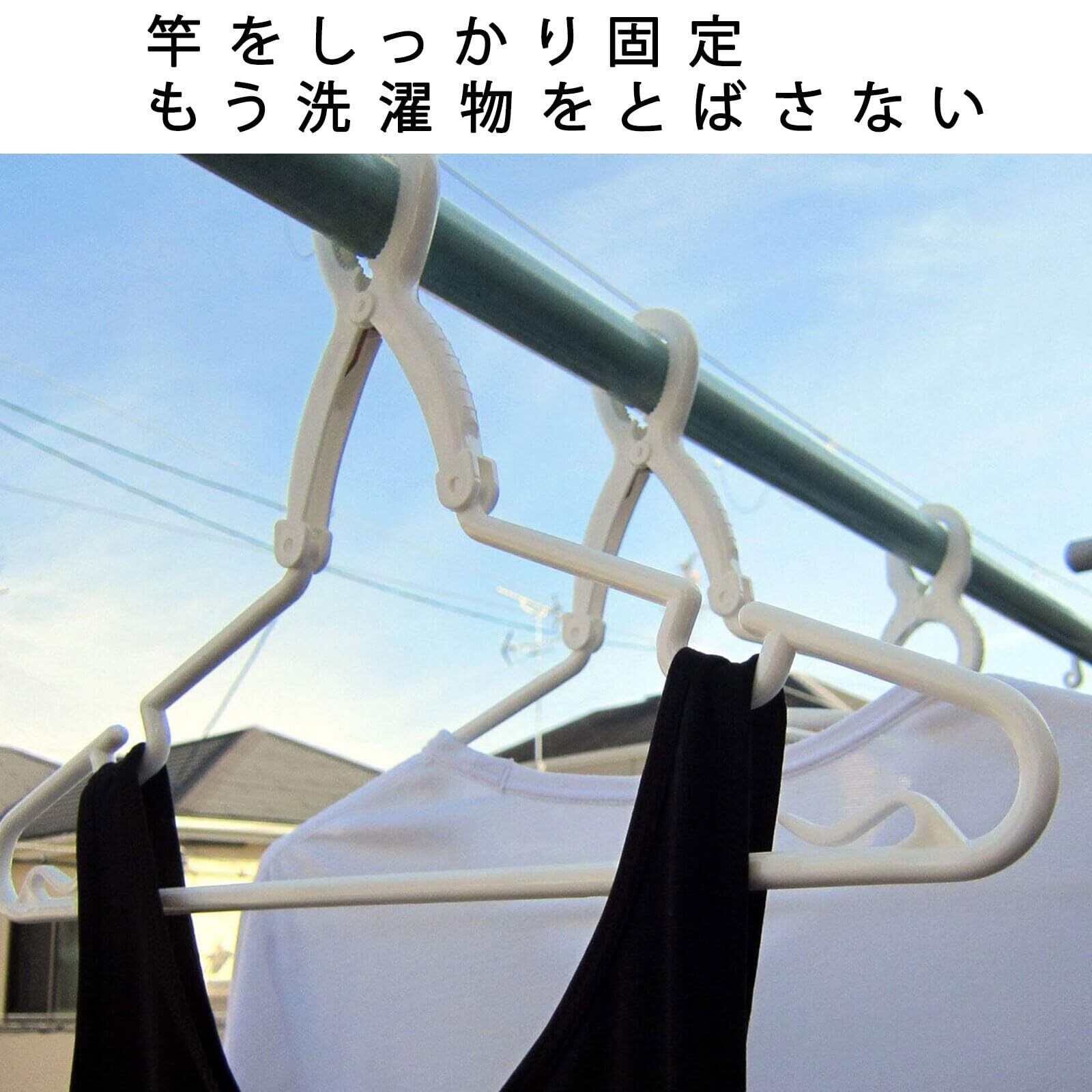 竿をしっかりつかんで固定。風が吹いても洗濯物が飛びにくいハンガー(安全のため、強風時には屋外での使用はお避け下さい)。