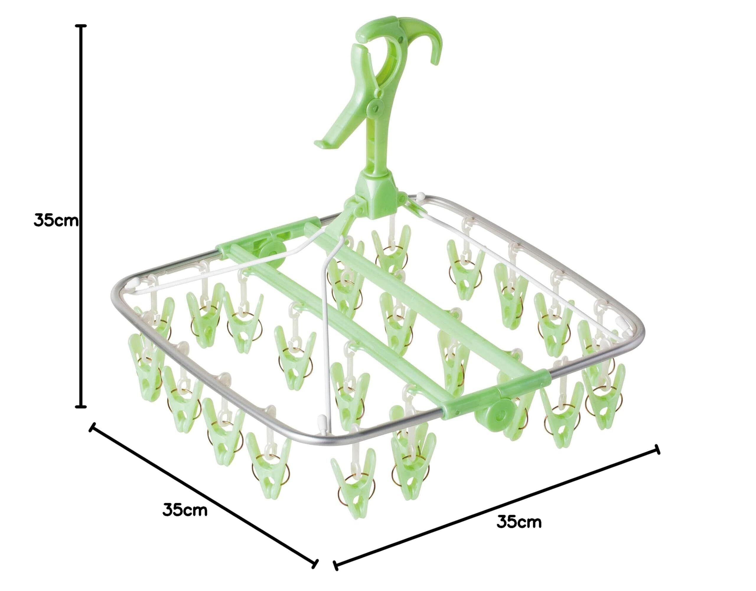 【新着商品】オーエ 洗濯 物干し ハンガー アルモアスマート 角 グリーン 24ピンチ 軽くて丈夫なアルミフレーム 約35×35×35cm