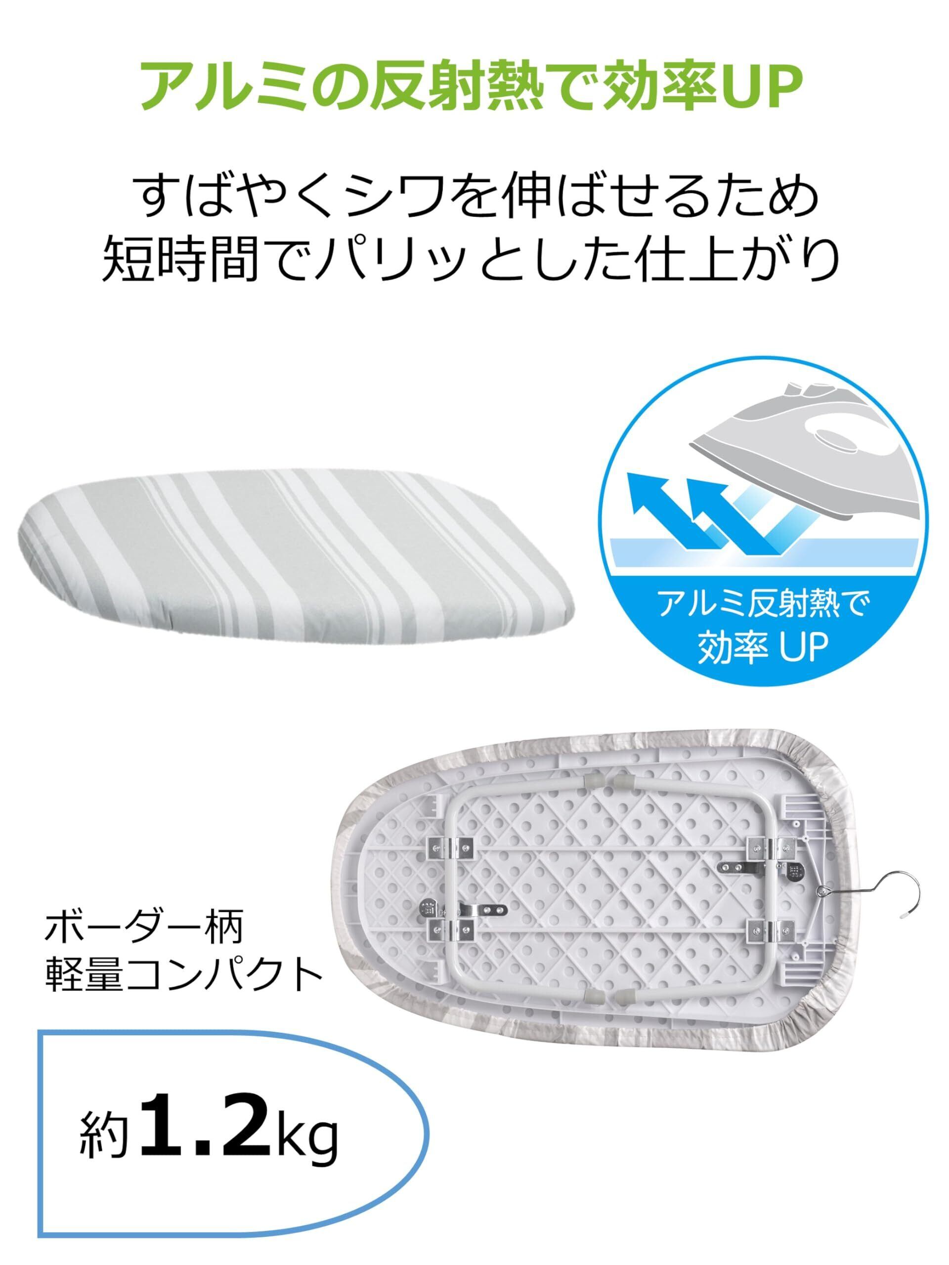【アルミコート】カバーにアルミコートを採用しているため、アイロンの熱が逃げにくい!すばやくシワを伸ばせるため、短時間でパリッとした仕上がり!