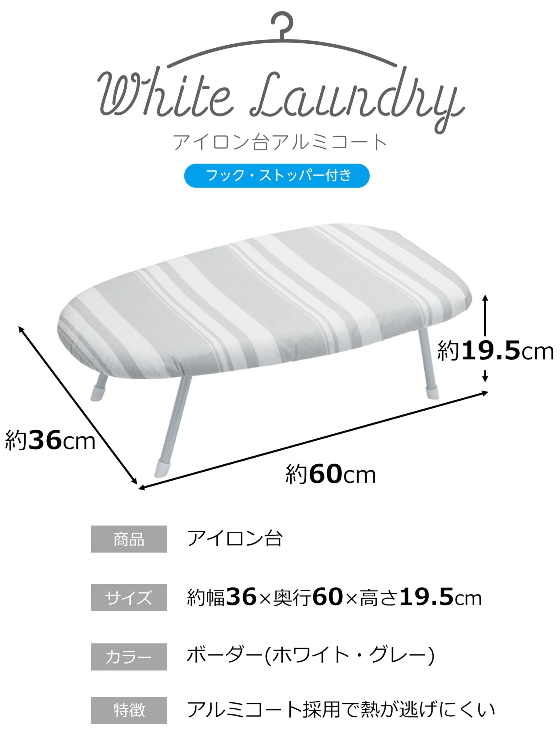 ストリックスデザイン アイロン台 ボーダー 約幅36×高さ19.5×奥行60cm フック付 ストッパー付 ホワイト&グレー お部屋に馴染む ホワイトカラー アルミコート SB-113