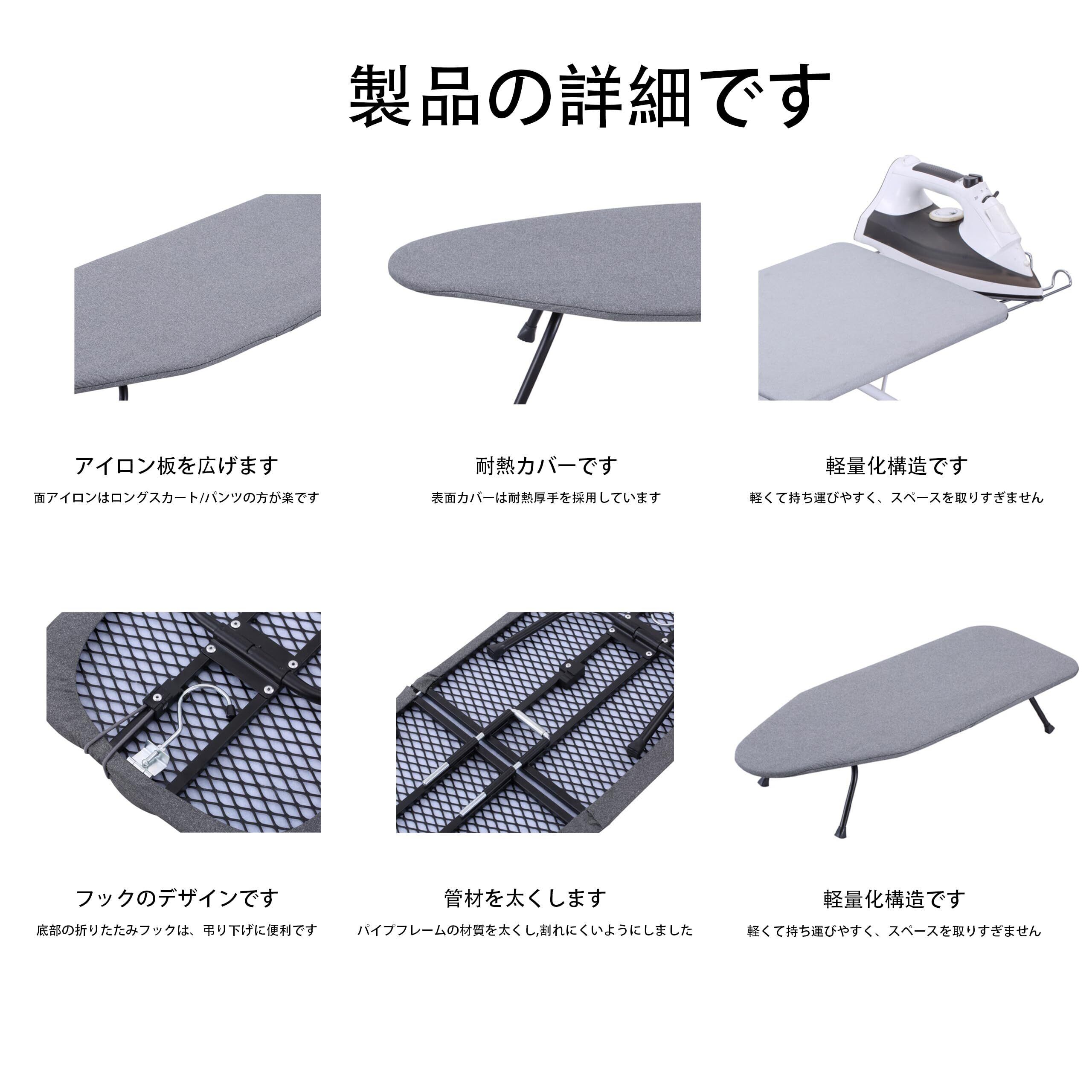 【収納が簡単】 :ミニアイロン台は素早く折りたたむことができ、折りたたみ用ヒンジはしっかりと設計されており、緩むことなく折りたたんだ状態を保ち、クローゼットなどに収納するのが簡単です