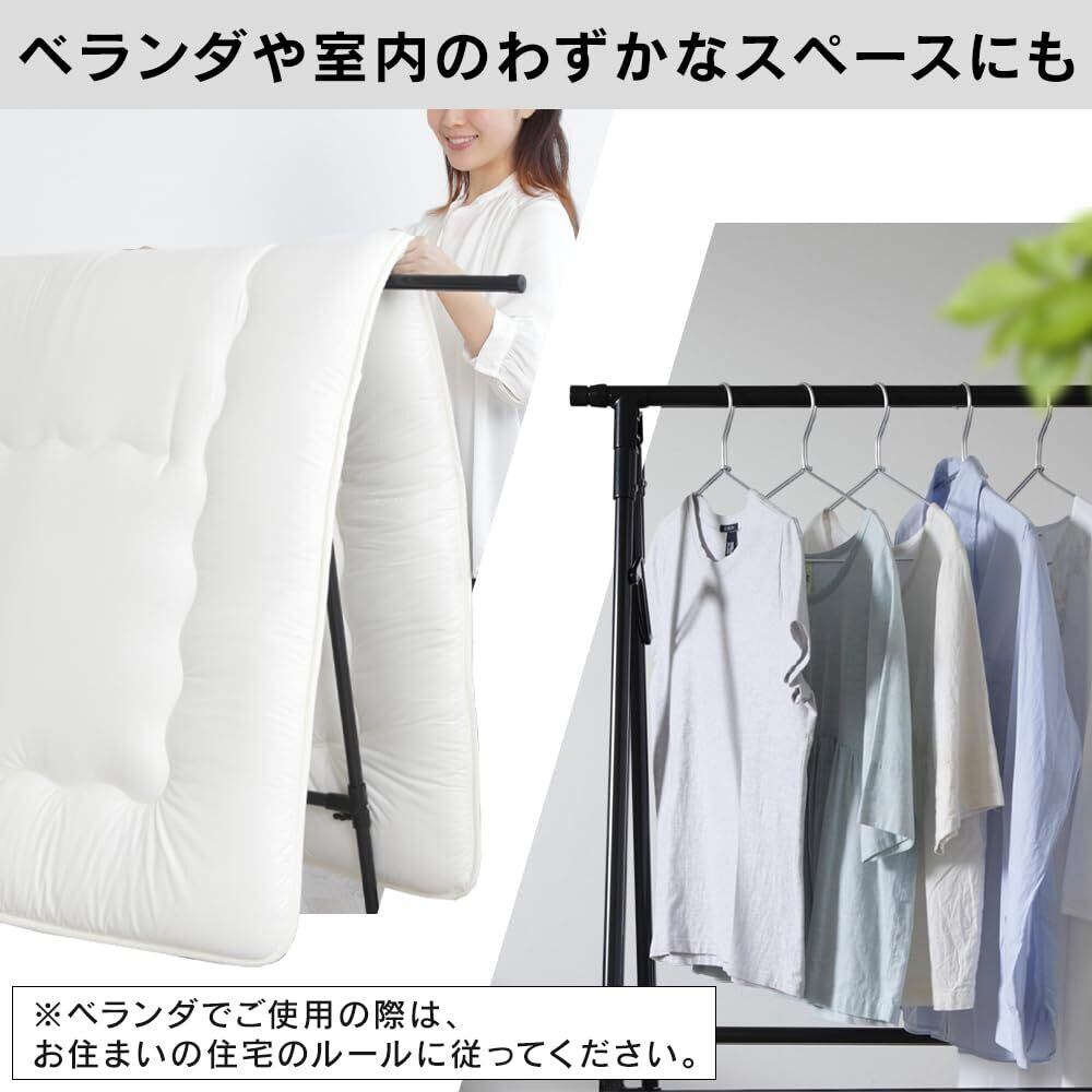 見た目も機能もシンプルに。ふとんも洗濯物も、パッと広げてサッと使える。ひとり暮らしにも最適なふとん干し。