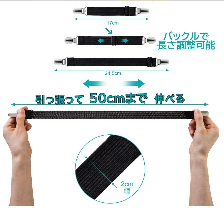 【調整可能】高弾力のナイロンで自由に伸縮でき、長さも調整できます。