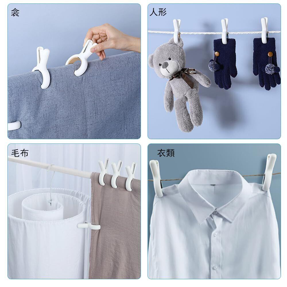 【多用途】:布団クリップは日常の洗濯に最適です。強力な挟持力と滑り止め設計で、床の用品をしっかり固定し、滑りや変形を防止することができます。ベランダでも室内で干しても、洗濯体験を楽にして便利にするために頼れるアシスタントです。