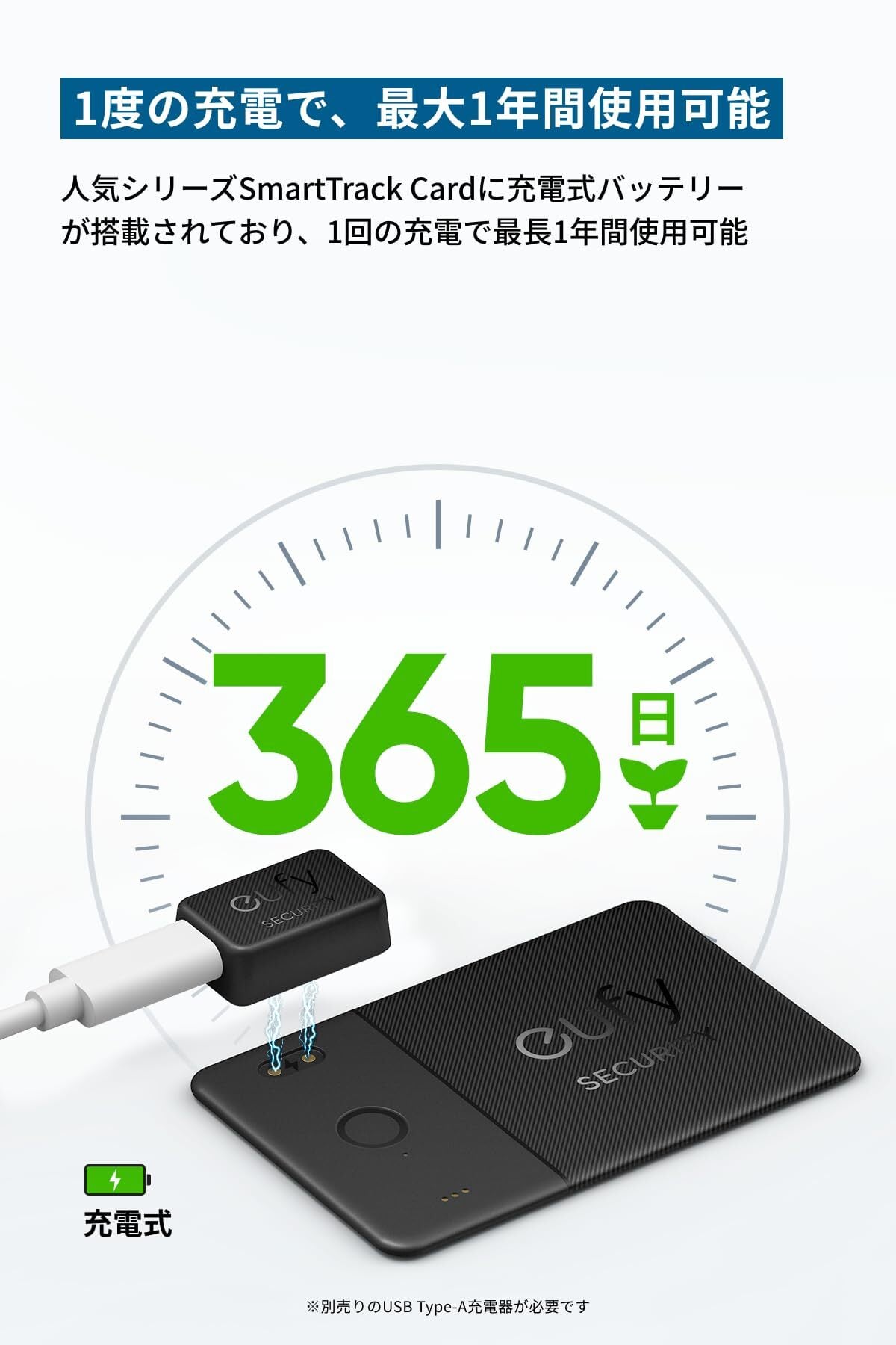 1度の充電で、最大1年間使用可能:人気シリーズSmartTrack Cardに充電式バッテリーが搭載されており、1回の充電で最長1年間使用可能です。