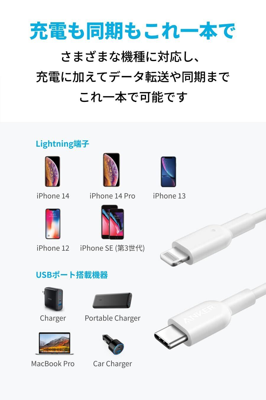 【人気商品】Anker PowerLine II USB-C & ライトニングケーブル MFi認証 USB PD対応 急速充電 iPhone 14 / 14 Plus / 14 Pro / 14 Pro Max / 13 / SE (第3世代) 各種対応 (0.9m ホワイト)