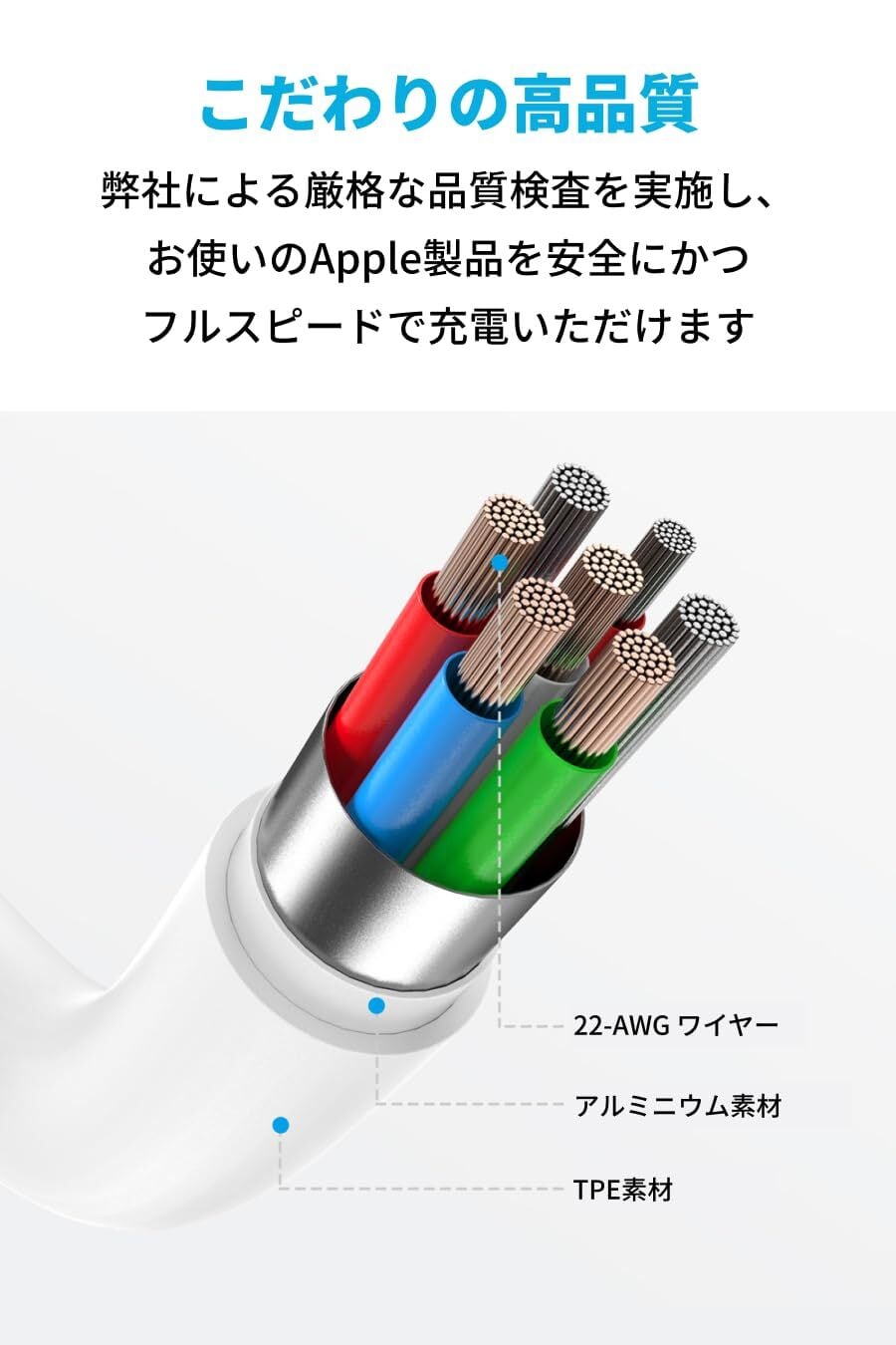 こだわりの高品質:Apple MFi認証済みに加え、による厳格な品質検査を実施しており、お使いのApple製品を安全にかつフルスピードで充電いただけます。
