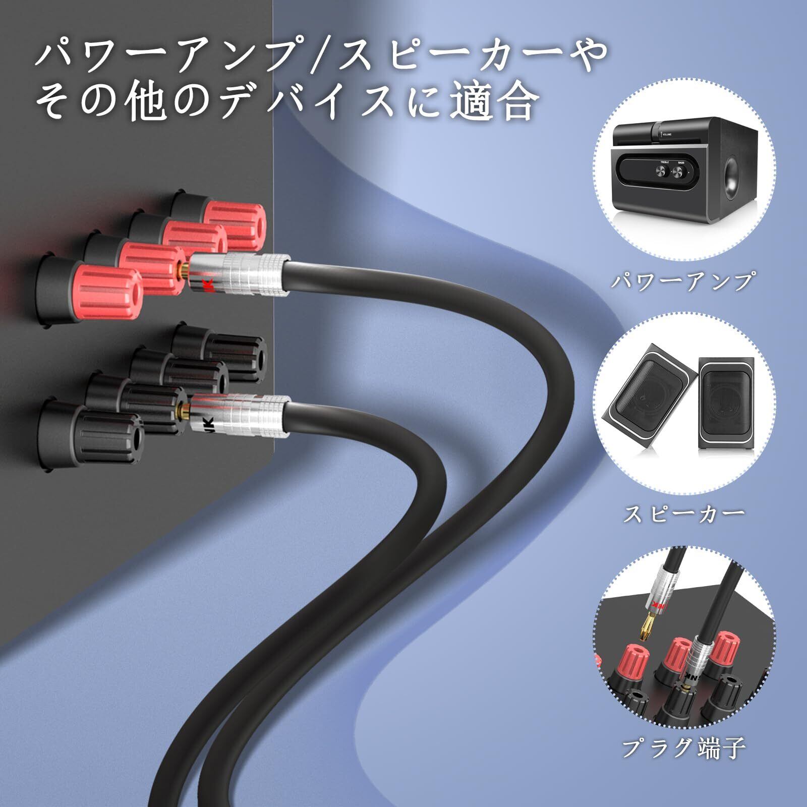 【広範な用途】標準サイズのスピーカーケーブル バナナプラグは、ほとんどのA/Vレシーバー、アンプ、サラウンドシステム、およびバナナプラグ壁板に適用されます。12-18 AWG(芯線外径サイズ‐4mmまで)までの様々なサイズのスピーカー線に対応しています