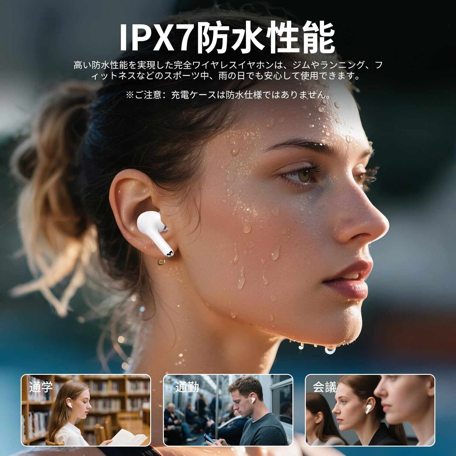 Bluetoothイヤホン ワイヤレスイヤホン AIスマート ENC通話 IPX7防水 最大60時間再生 2025年最新Bluetooth6.0 ブルートゥースイヤホン 全音域HI-FI音質 低遅延 接続瞬時 片耳/両耳 WEB会議/運動/ゲーム/テレワーク/通学/通勤/スポーツ/音楽用 iPhone/Android対応 (01white)