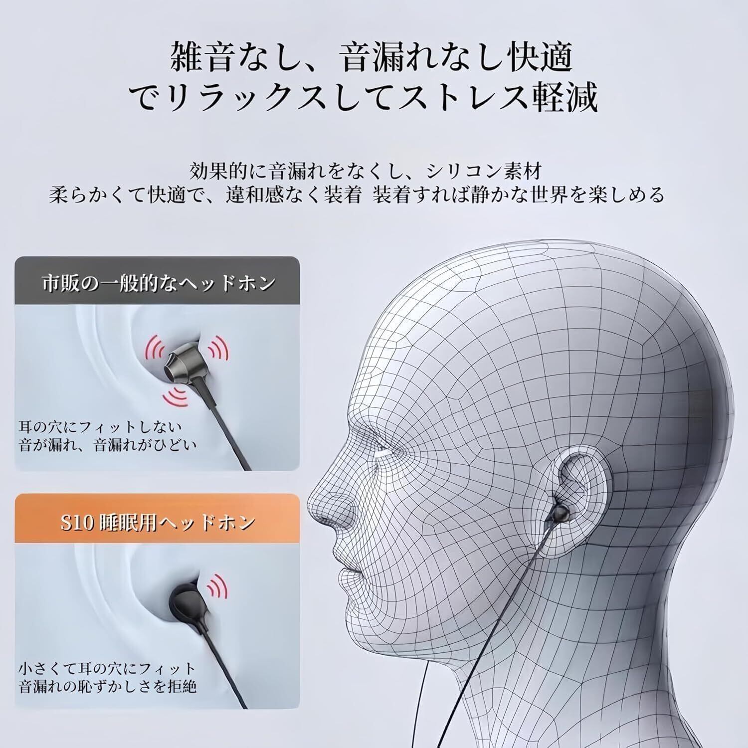 【快適な睡眠をサポートする、特別な有線イヤホン!】この睡眠用イヤホンは、ユニークなソフトシリコン素材を使用しており、寝ながらでも快適にお使いいただけます。軽量で超小型のデザインは、耳に優しくフィットし、長時間つけていてもストレスを感じません。外部のノイズを遮断する仕様で、静かな環境での安眠を実現します。