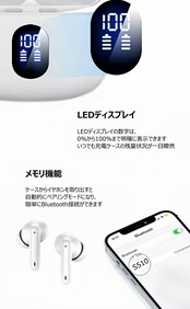 【バッテリー残量表示 & 長時間音楽再生】 LEDディスプレイ表示により、充電ケースとイヤホンの充電残量を簡単に確認できます。一目瞭然で、イヤホンの電気量を推測する必要はありません。注:イヤホンをイヤホン倉に戻すと自動的に充電され、充電中はLEDディスプレイが点滅します。イヤホン本体が満充電になると、イヤホン倉のLEDディスプレイのライトが自動的に消えます。イヤフォン本体が満充電の状態から、最大で連続約6時間の通話や音楽再生が可能です。イヤホンチャンバーのフル充電で5回程度イヤホンを充電でき、合計約36時間音楽再生が可能です。