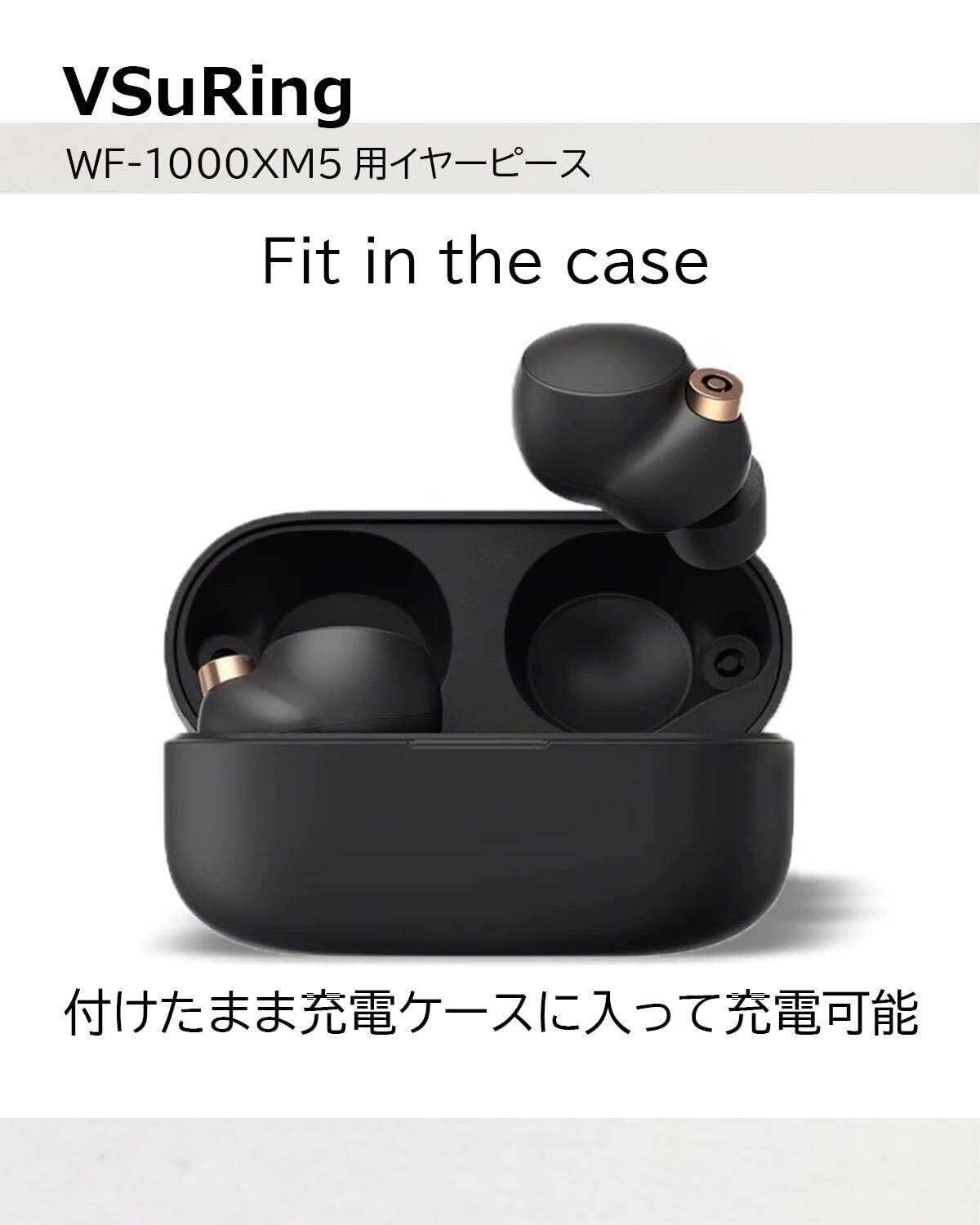 VSuRing イヤーピース ソニー用 WF-1000xm5 交換用 8個 低反発ウレタン製 耳垢ガード フィルター付 Fit in the Case 遮音性 滑り止め 柔らかい 快適 付けたまま充電可能 フィット感向上 メモリーフォーム スポンジ SONY用 イヤーチップ 収納ケース付 黒 (M)