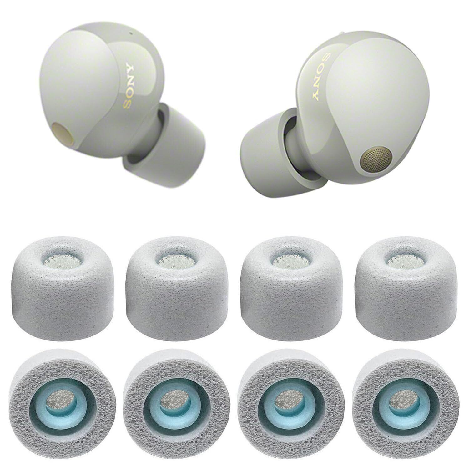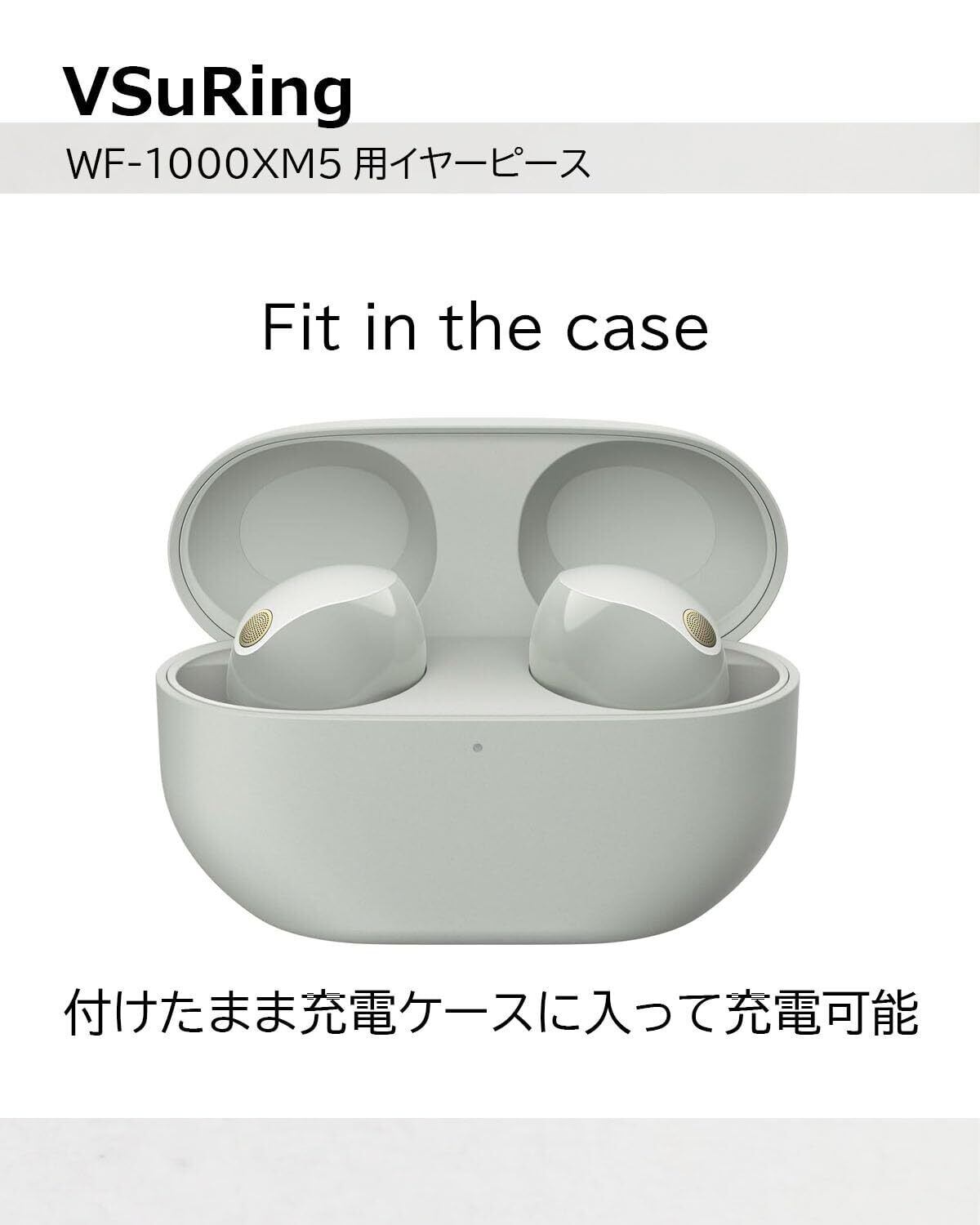 【新着商品】VSuRing イヤーピース ソニー用 WF-1000xm5 交換用 8個 低反発ウレタン製 耳垢ガード フィルター付 Fit in the Case 遮音性 滑り止め 柔らかい 付けたまま充電可能 フィット感向上 メモリーフォーム スポンジ SONY用 イヤーチップ 収納ケース付 プラチナシルバー (L)
