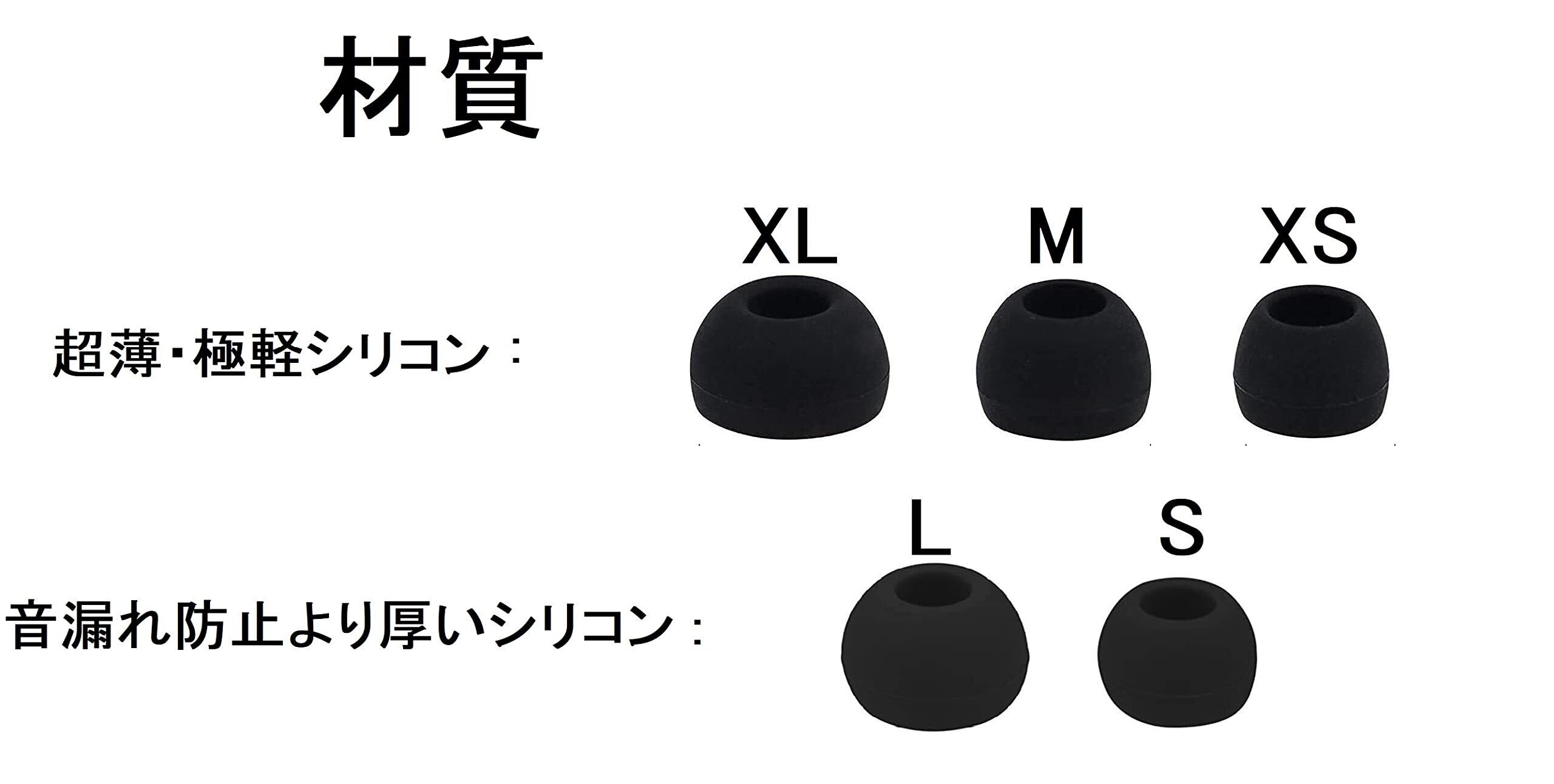 5サイズ、2種類の厚さ(XS/M/XLが超薄・超軽量、S/LがOEMより厚くて遮音性がより良いです)が含まれます。