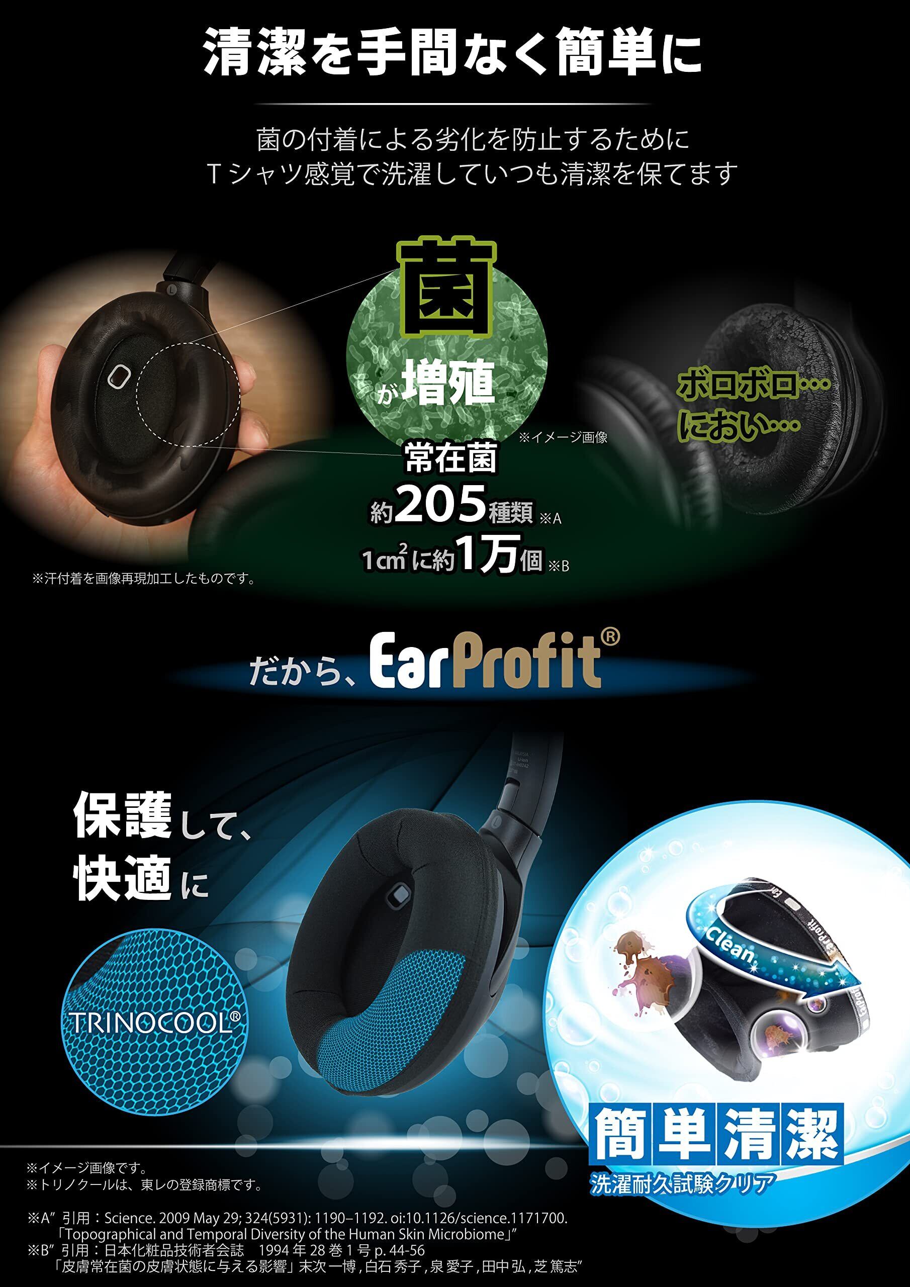 【こちらの商品はEarProfit Ver1になります。】【パッドに簡単装着で、耳を圧迫しないのに、さらさら・消臭!】新しいカタチのヘッドホンカバーEarTouchが大幅に進化しました!Makuakeで455%の達成率で成功した話題の新作です!【生地はトリノクールでとても気持ちいい! 】(※東レの登録です)/特徴①高い伸縮性(3D方向に自在に伸縮)/特徴②吸汗速乾性 /特徴③高い消臭機能(消臭繊維使用)/特徴④手洗い可能 /特徴⑤国産製【パッドだけをカバーできる設計(技術)=他社では真似できません。】 特徴①開口部をふさがない/特徴②音質を阻害しない【だから】 ・いつも快適サラサラでムレベタつきがなくなった! ・手洗いできていつも清潔にできる! ・音質を重視する人でも安心! ・様々なヘッドホンに対応可能で楽しい! ・内部センサーを邪魔しない唯一のカバー! ・ムレベタつきを気にせずGAMEに没入できる! ・化粧やヘアワックスがパッドに付かないので、ヘッドホンを清潔に保てます!