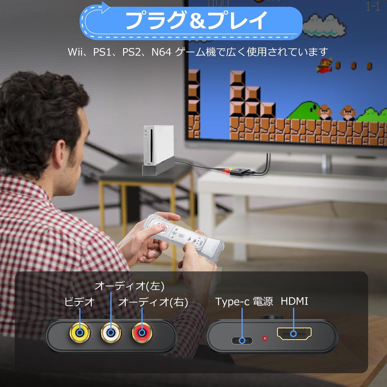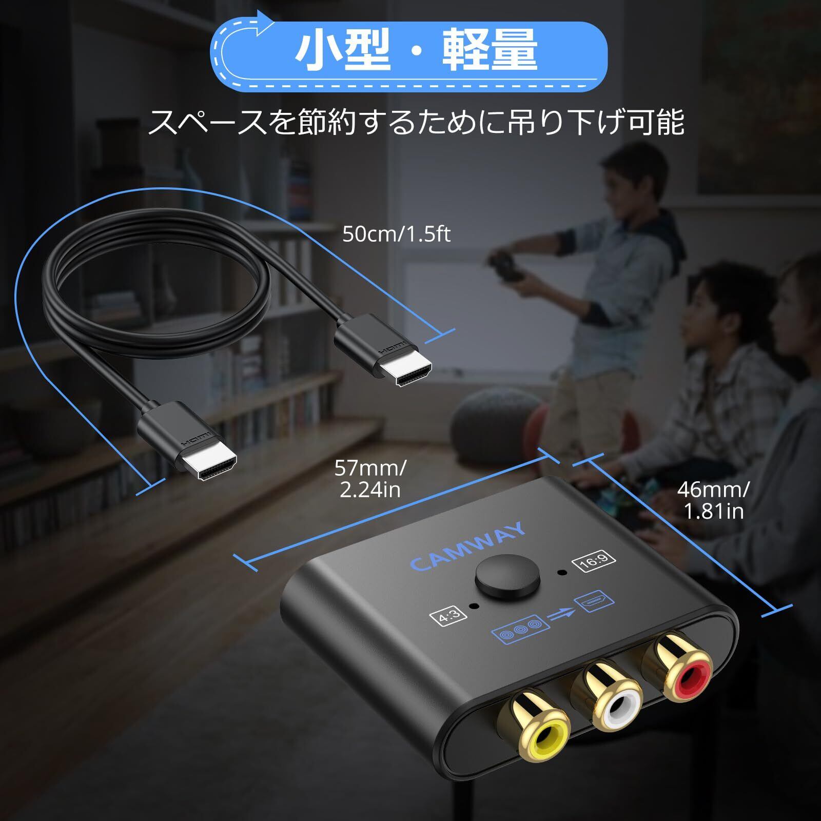 CAMWAY RCA to HDMI 変換 コンバーター 16:9/4:3変換 AV to HDMI コンバーター hdmi 変換 720P/1080P変換 (赤、白、黄)3色端子 ミニ コンポジット Wii/PS1/PS2/N64用 DVD/VHS/VCR用