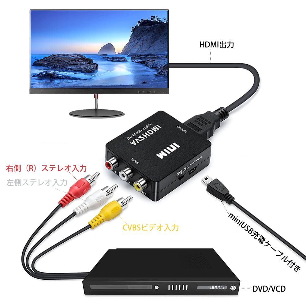 AV to HDMI変換コンバーター RCA to HDMI変換 Deear 1080P/720P切り替え アナログ変換 音声出力可 テレビ用変換コンバーター 充電ケーブル付き ブラック