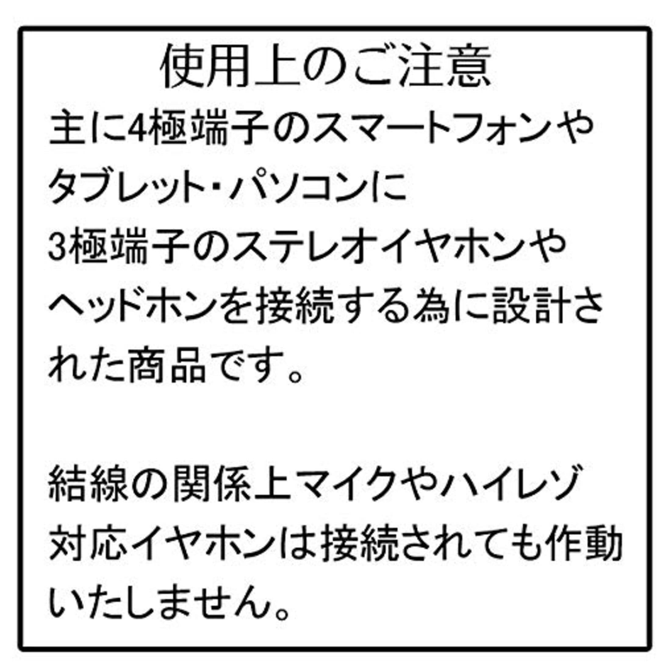 3極ステレオミニプラグを搭載した出力機器(オーディオヘッドホン・イヤホン・スピーカー等) を4極専用デバイス(スマートフォンなど)で安定動作をする為の製品です。