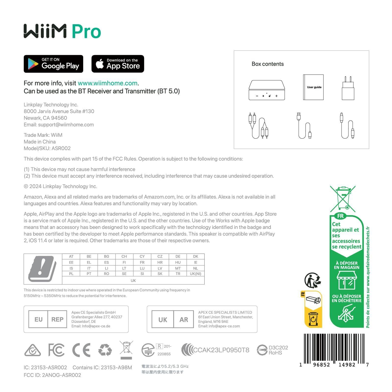 【直輸入品】WiiM Pro AirPlay 2 レシーバー、クロームキャスト対応、WiFi マルチルーム ストリーマー、Alexa、Siri、グーグルアシスタント対応、スポティファイ、 Music、Tidal などのハイレゾ音源ストリーミング