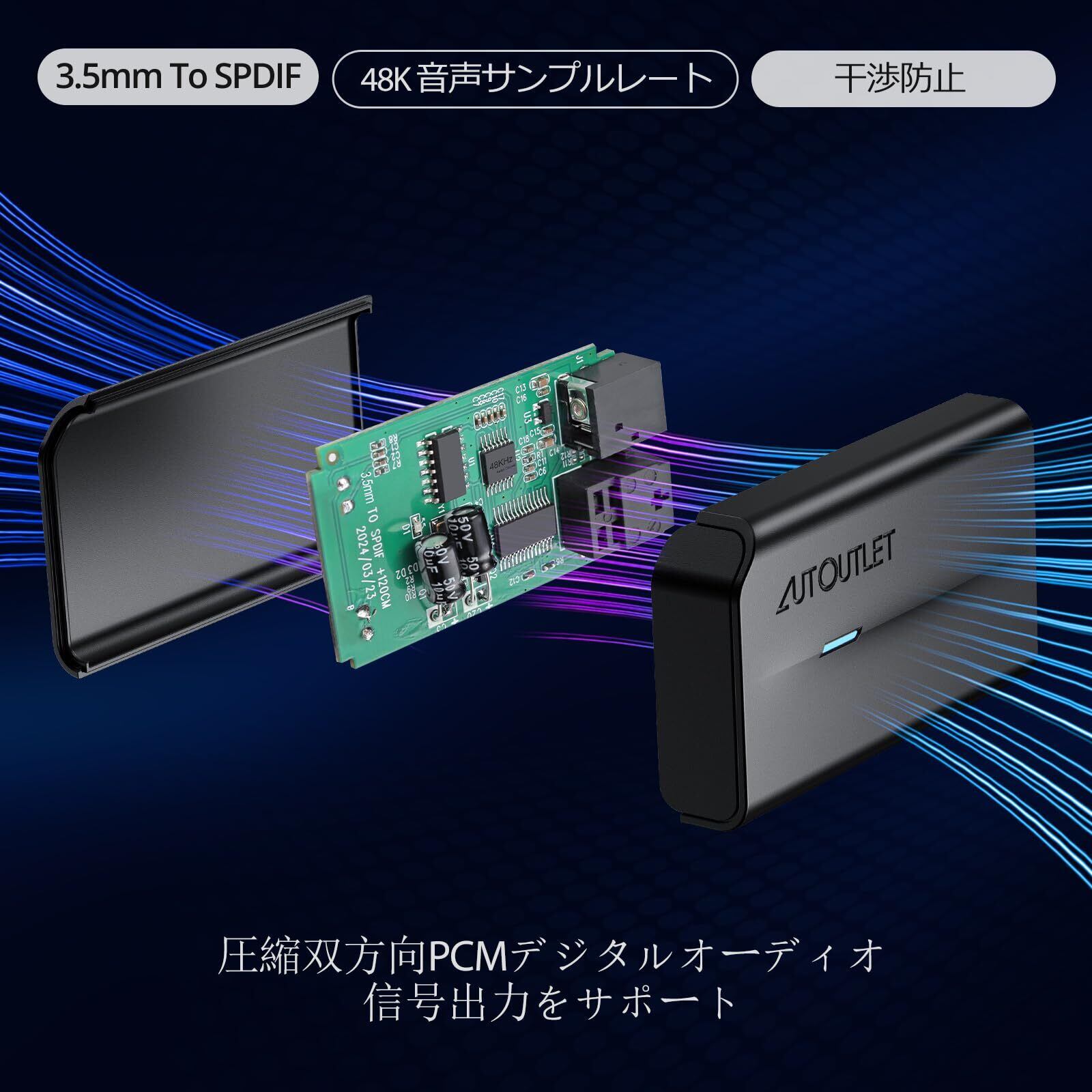 AUTOUTLET アナログ デジタル オーディオ コンバーター 3.5mm 光デジタル 変換 AUXからSPDIF 48KHz対応 音声変換器 3.5mmケーブル内蔵 光ケーブル付き