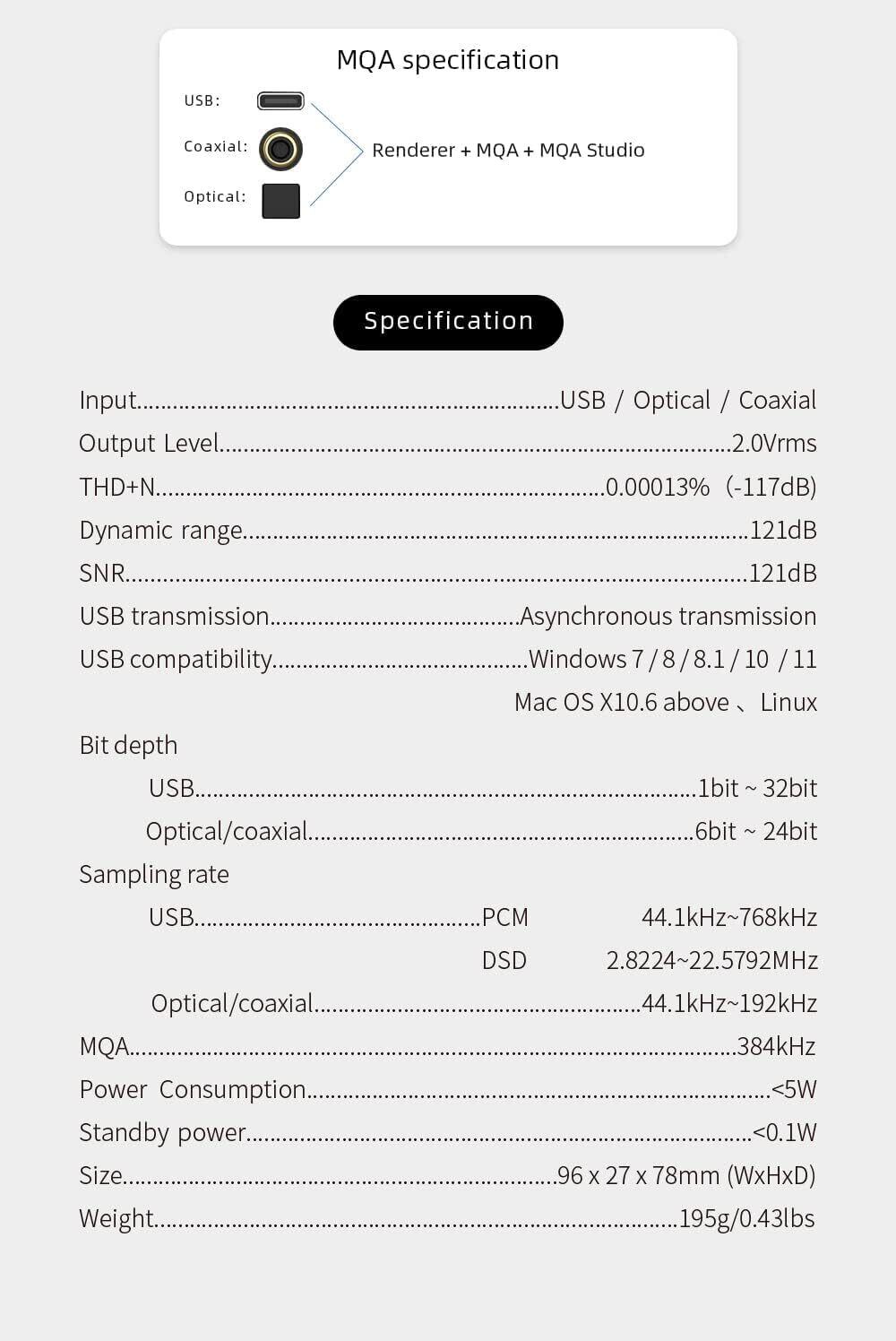 MQA CD対応:CDプレーヤー+MQA対応DAC,CDプレーヤーのデジタル出力(光または同軸)をMQA対応DACに供給することができます。 コーダーです。MQAデコーダーは、元のハイレゾ信号を復元して聞くことができます。 SMSL SU-1は、MQA CDに対応しています。
