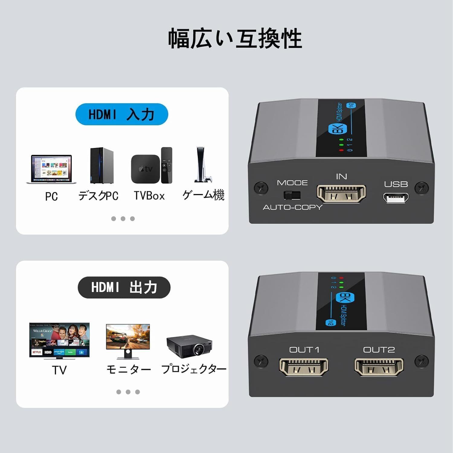 【特別価格】【8K 4K 144Hz】HDMI 分配器 1入力2出力 同時出力 SP907 HDMI2.1 スプリッター 2分配 2出力 2画面 HDMI Splitter 分岐 HDCP2.3対応 分配機 PC PS5 PS4 PS4Pro カメラ BD Player 対応 TV モニター プロジェクター 出力