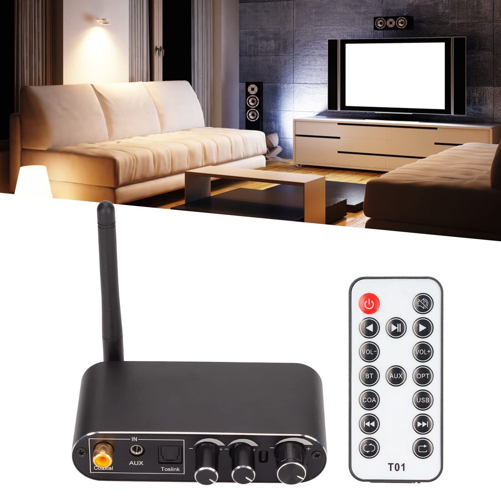 【強力な機能】 - 内蔵アンテナにより、より安定した信号伝送とクリアなサウンド、ノイズのない再生が可能です。アルミ合金の外観は美しく、耐久性もあります。赤外線リモコンのアップグレードにより、より便利に操作できます。音量の調整や効果の高低調整にも対応しています。簡単なインストールと操作が可能で、コンパクトで軽量なデザインです。