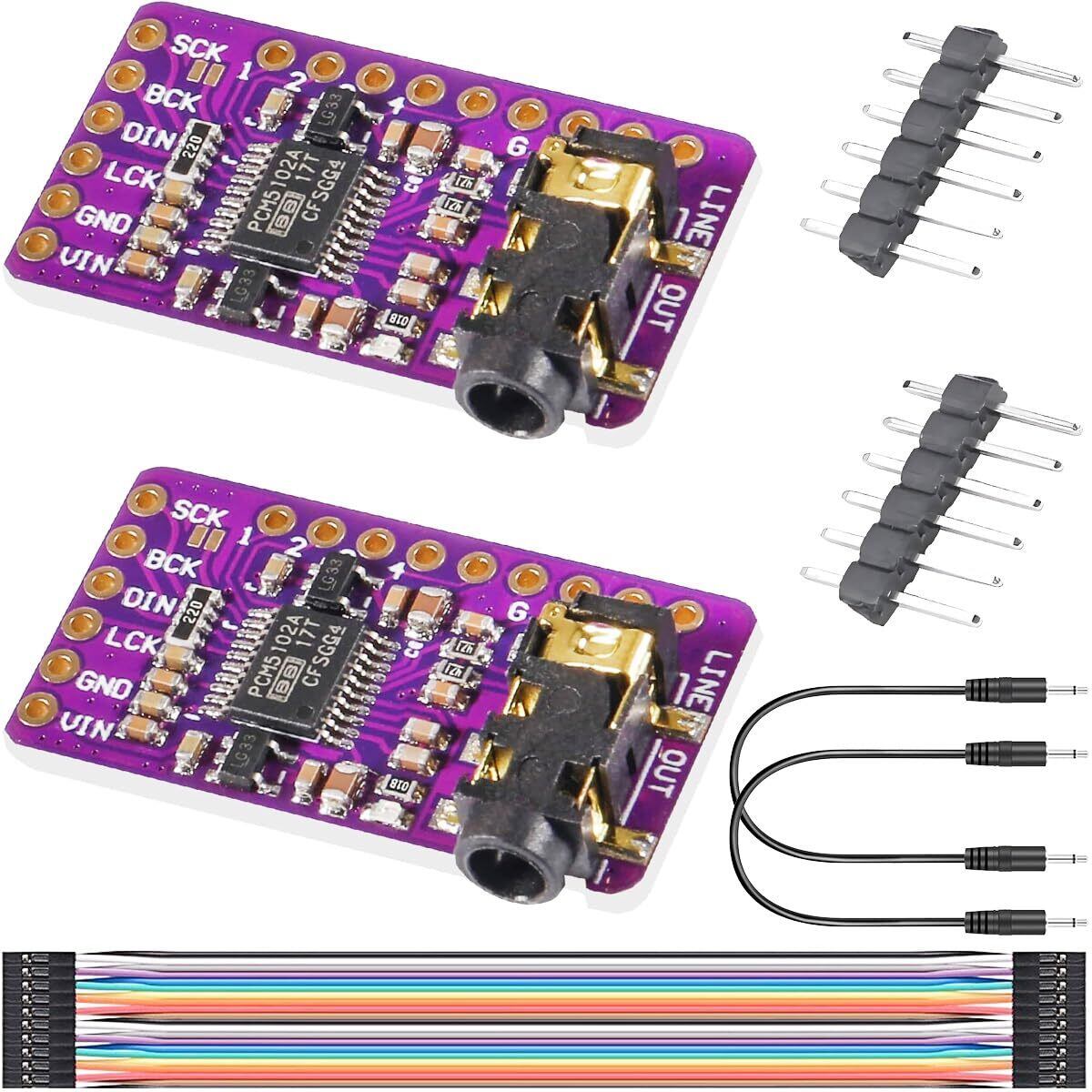 Youmile 2個 PCM5102 DACデコーダーモジュール PCM5102A AUXステレオデジタルからアナログオーディオコンバーターボード I2S IIS MCUボイスモジュールプレーヤーモジュール ピンヘッダー接続ケーブル 3.5mmオーディオケーブル