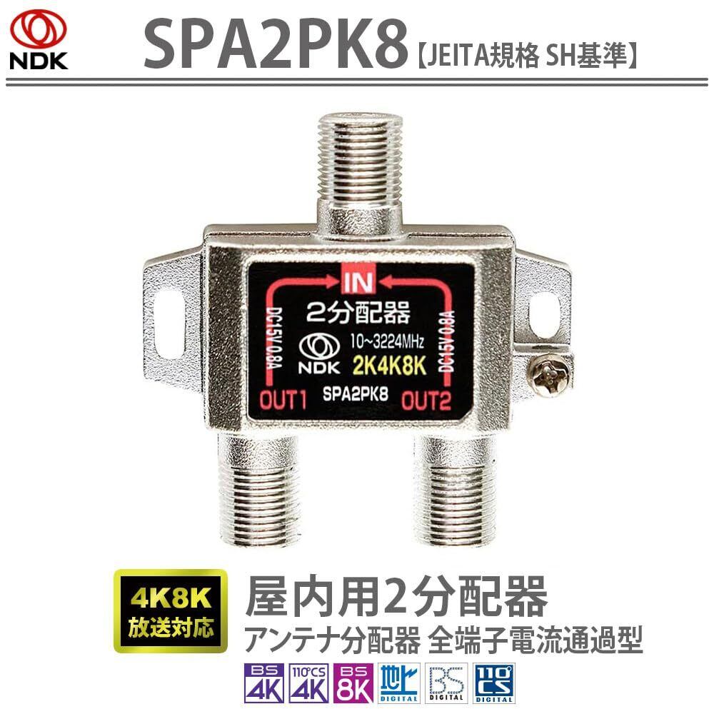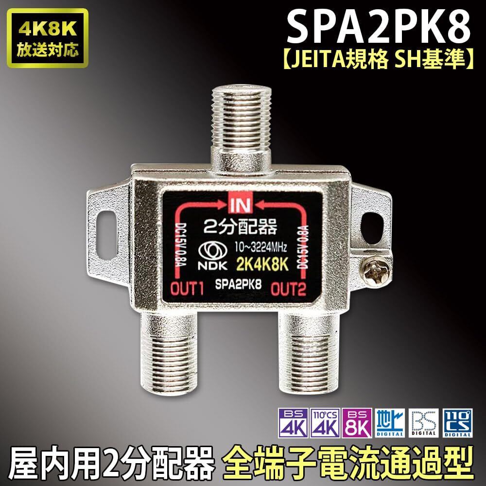 【在庫限り】二幸電気工業 アンテナ分配器 2分配 (4K 8K BS CS CATV 地デジ) 屋内用 全端子電流通過型 (SPA2PK8)