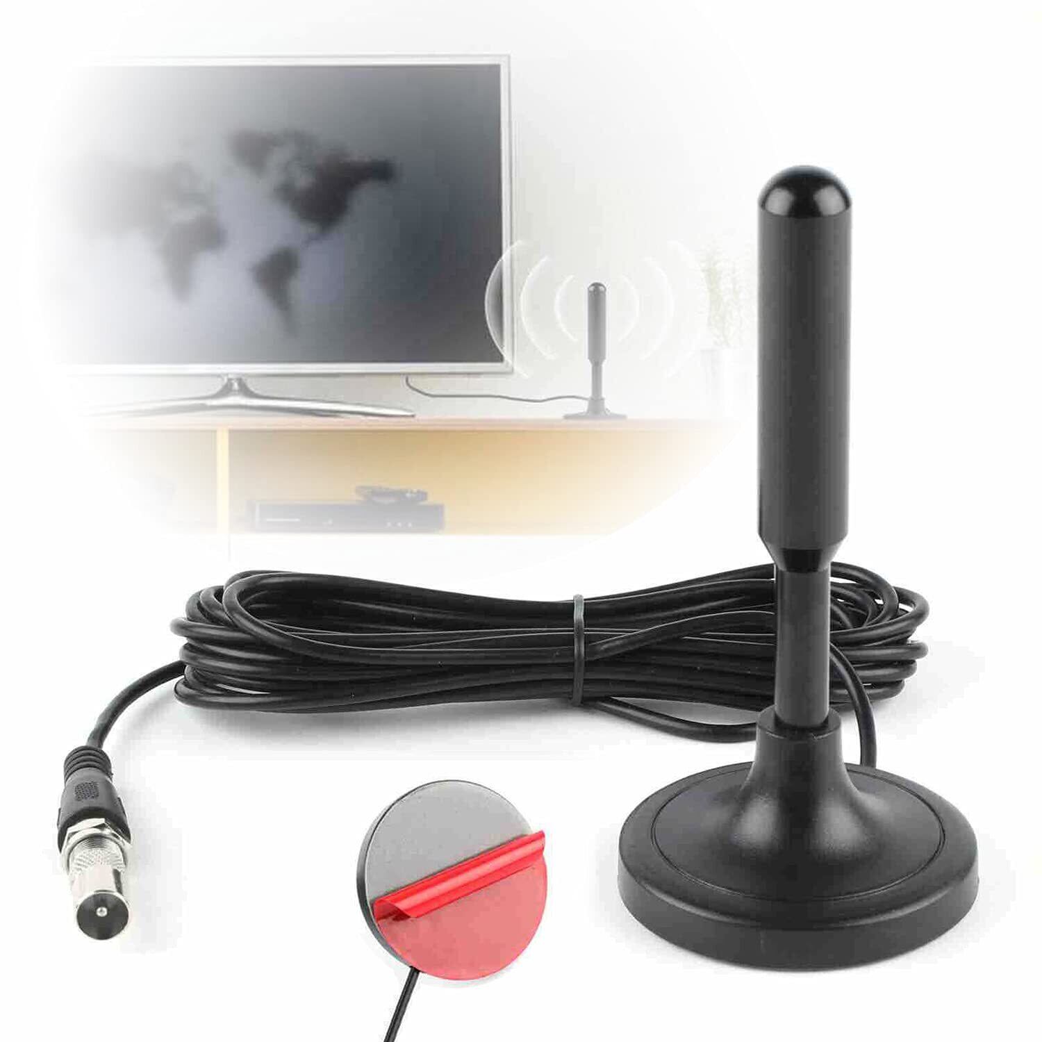 【人気商品】室内アンテナ デジタルアンテナ テレビアンテナ ポータブル Deear 高感度 174-230MHZ 470-862MHZ対応 全種類テレビ対応 車載 設置簡単(テープ固定) 3m