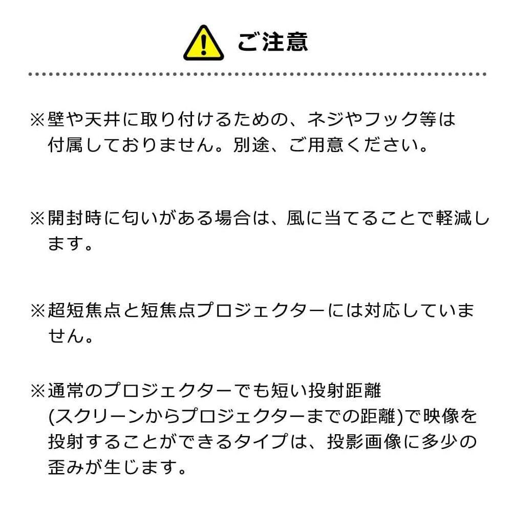 【ご注意】※超短焦点と短焦点プロジェクターには非対応です。※可動部分で指などを挟まないよう、十分ご注意ください。※スクリーンを引き出す時、収納する時はゆっくり操作してください。※スクリーンの取り付けは必ず専門の取り付け工事業者にご依頼ください。