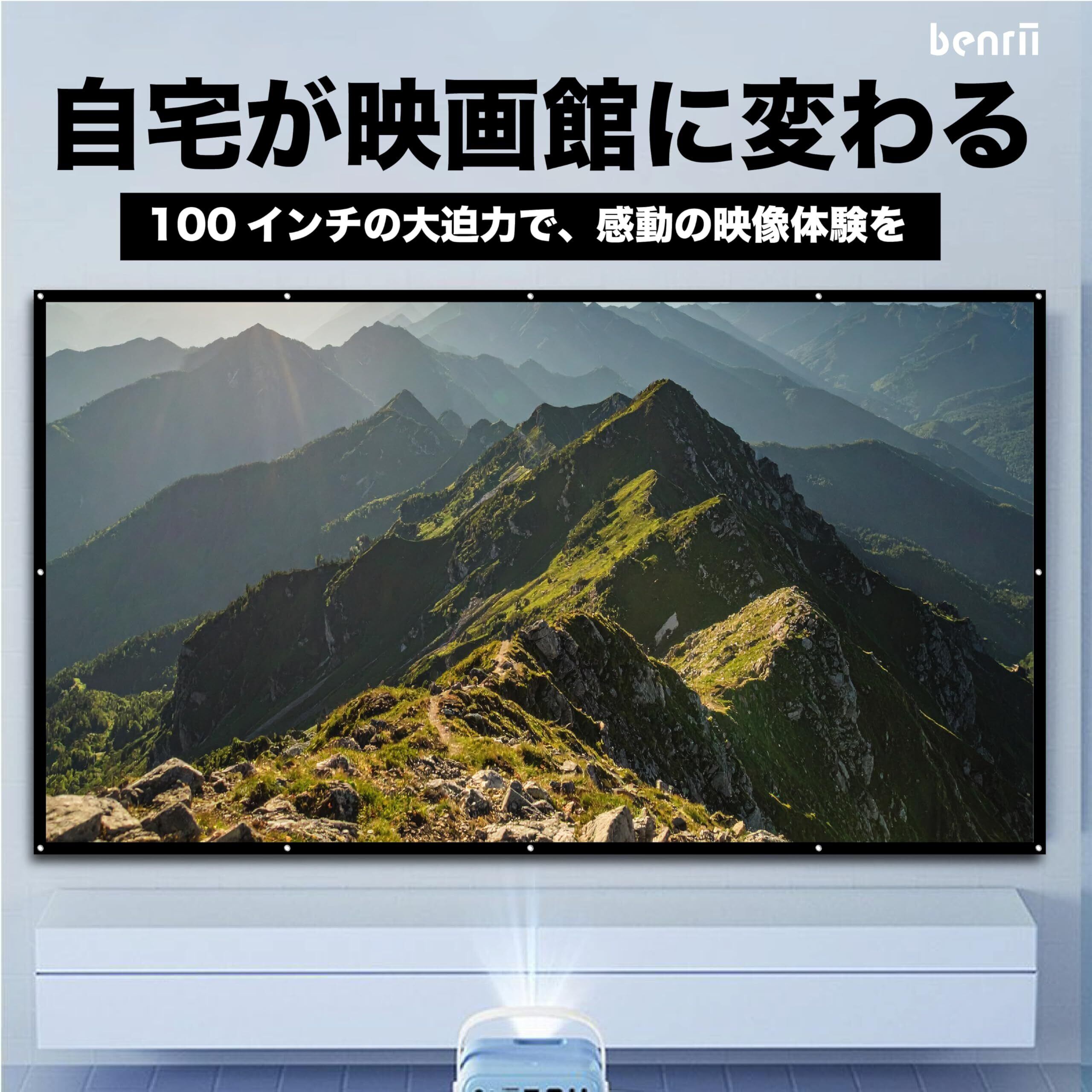 benrii【100インチ・16:9】 プロジェクタースクリーン 折りたたみ式|壁掛け・吊り下げ対応|家庭用・屋外対応 再現