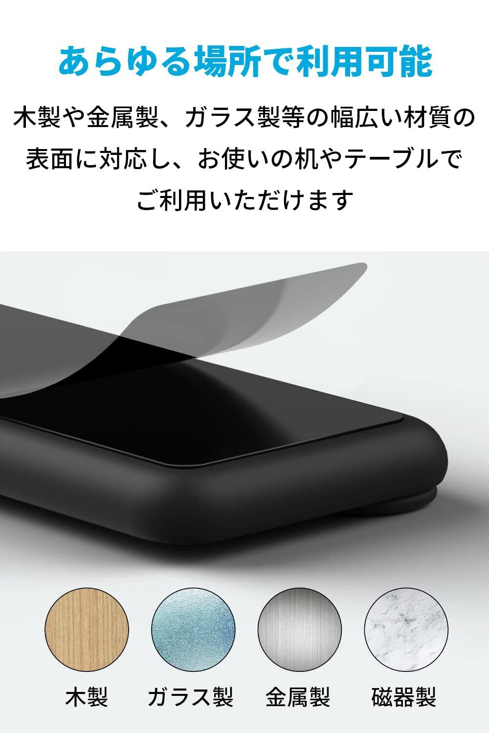 広範な素材対応:木製、金属製、ガラス製など、多種多様な素材の表面に適応します。どこでも手軽に設置可能で、デスクやテーブルをすっきりと整理します。