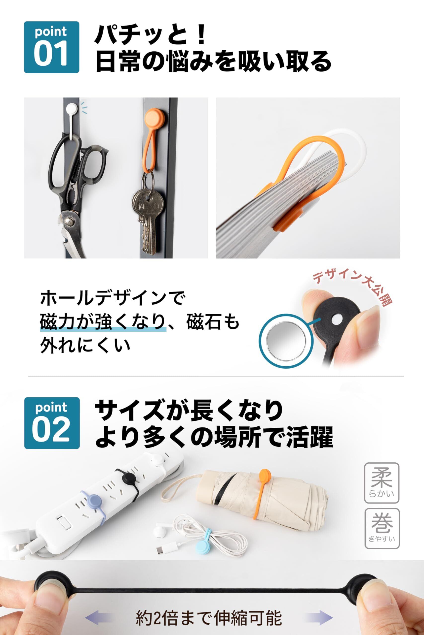 【アイデア次第・使い方無限大】配線整理グッズとしてだけでなく、栞やフォトクリップ、キーリング、袋止め、そして冷蔵庫のメモクリップなどとしても活用可能です。さらに、卓上やホワイトボード、車内、キッチンなど、様々な場面で役立ちます。使い方はお客様次第で、無限の可能性がありますので、ぜひ独自の使い方を見つけてみてください